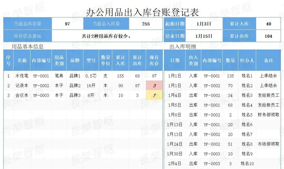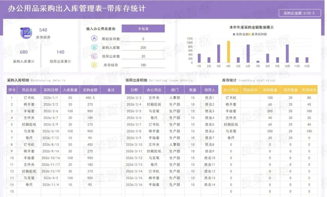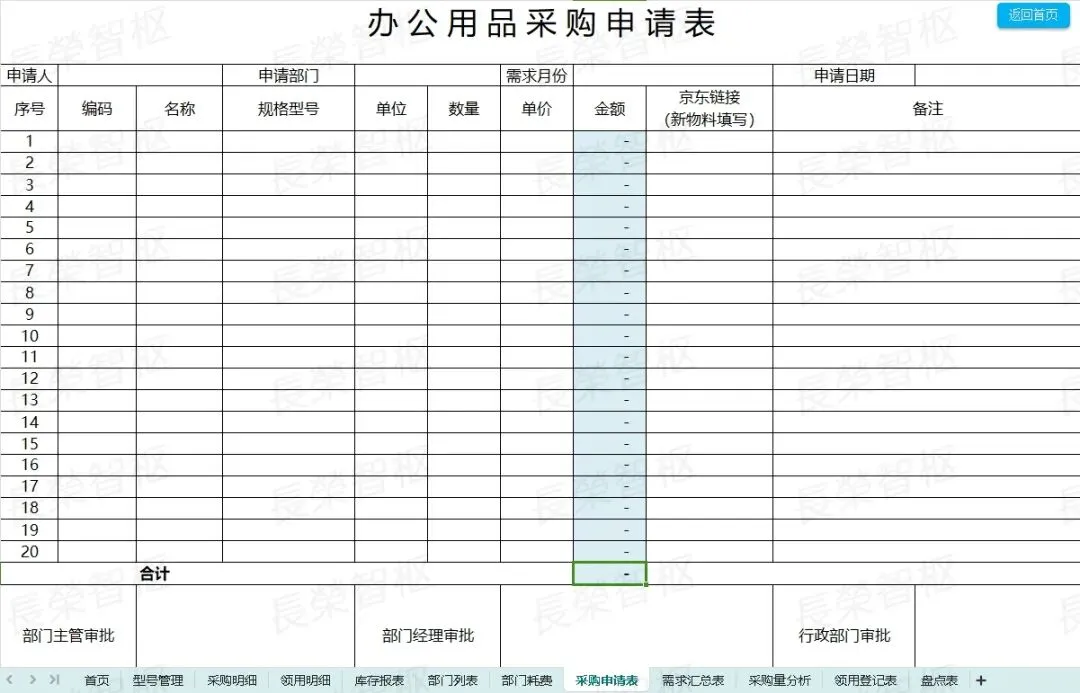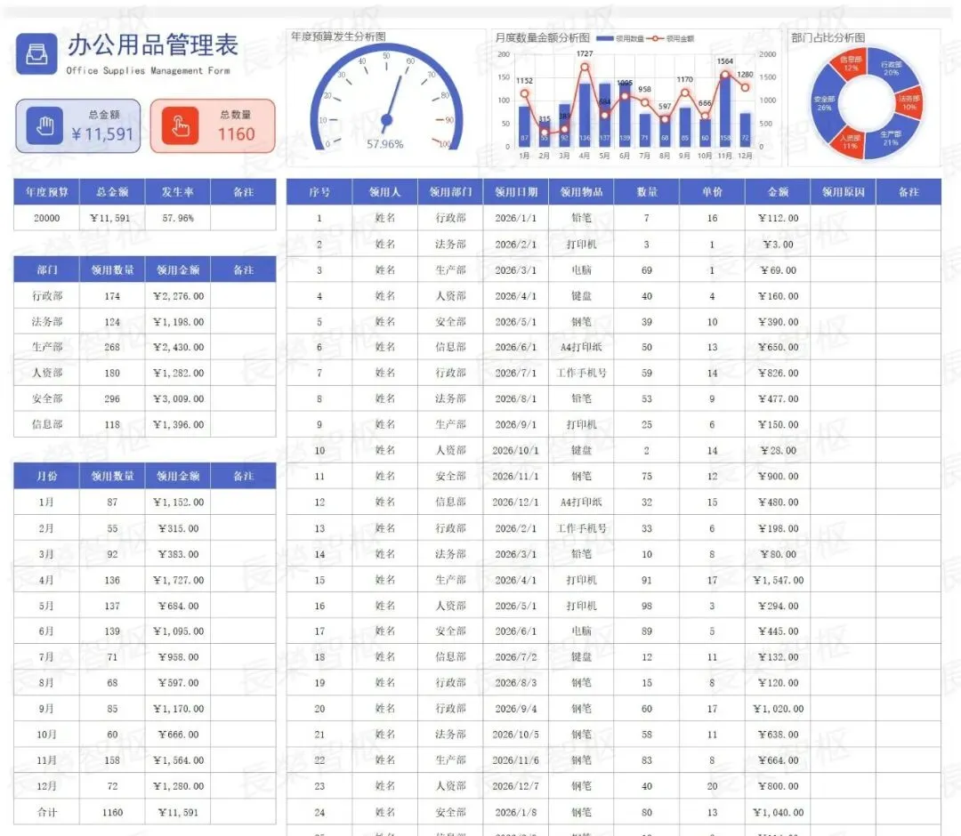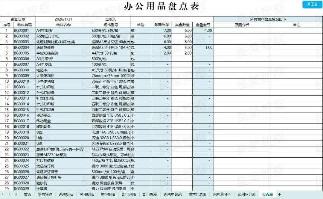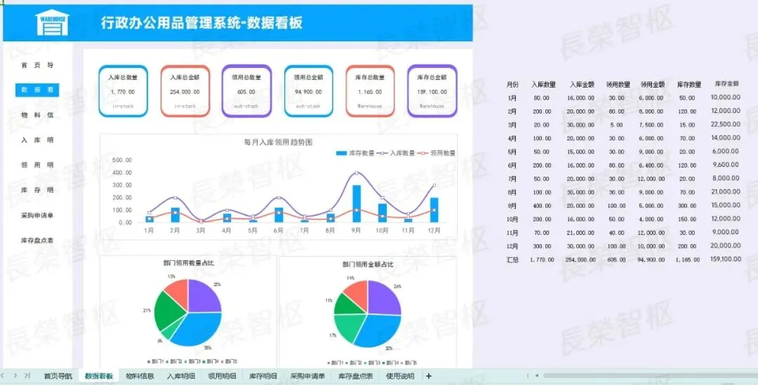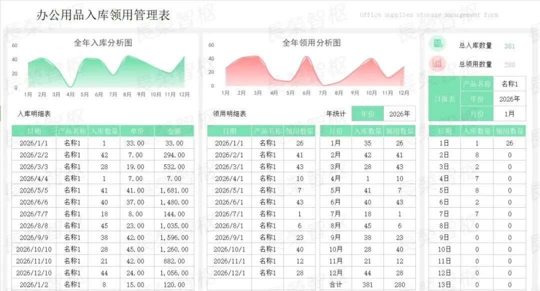 手工登记易出错、库存不清总断供、领用审批耗时间、成本统计无依据……这些办公用品管理的痛点,是不是每天都在困扰着你?#高效办公工具推荐✅模板资源内容包含:01行政办公用品管理系统02行政办公用品管理系统03办公用品入库领用管理表04办公用品管理系统05办公用品管理表06办公用品出入库台账登记表07办公用品采购出入库管理表-带库存盘点08办公用品领用登记表✅五大核心模块,覆盖管理全场景1. 基础核心列表:包含「型号管理」「部门列表」两大基础模块,统一录入办公用品型号、规格、对应参数,明确各部门信息,规范基础数据,为所有管理环节提供统一数据支撑,避免信息混乱。2. 采购全流程管理:涵盖「采购申请表」「采购明细」「采购量分析」,从采购申请提交、采购详情登记,到采购量多维度分析,全程可追溯,自动汇总采购数据,杜绝重复采购、盲目采购,合理控制采购成本。3. 领用规范管理:包含「领用登记表」「领用明细」,员工领用需规范填写相关信息,系统自动记录领用详情、领用时间,可按个人、部门快速查询,规范领用流程,减少办公用品浪费,做到领用有迹可循。4. 库存动态管理:核心为「库存报表」「盘点表」,实时同步库存数据,清晰呈现各类办公用品当前库存、出入库记录,盘点表可快速核对实际库存与系统库存,及时发现差异,避免库存短缺或积压。5. 数据统计分析:涵盖「部门耗费」「需求汇总表」,自动统计各部门办公用品耗费情况,汇总全公司办公用品需求,直观呈现消耗趋势、需求重点,为采购决策、成本管控提供精准数据支撑。
