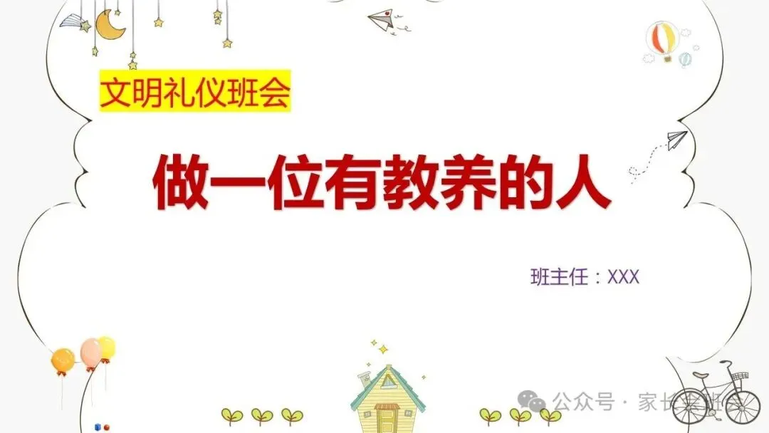 文明礼仪主题班会ppt:做一位有教养的人(含视频)