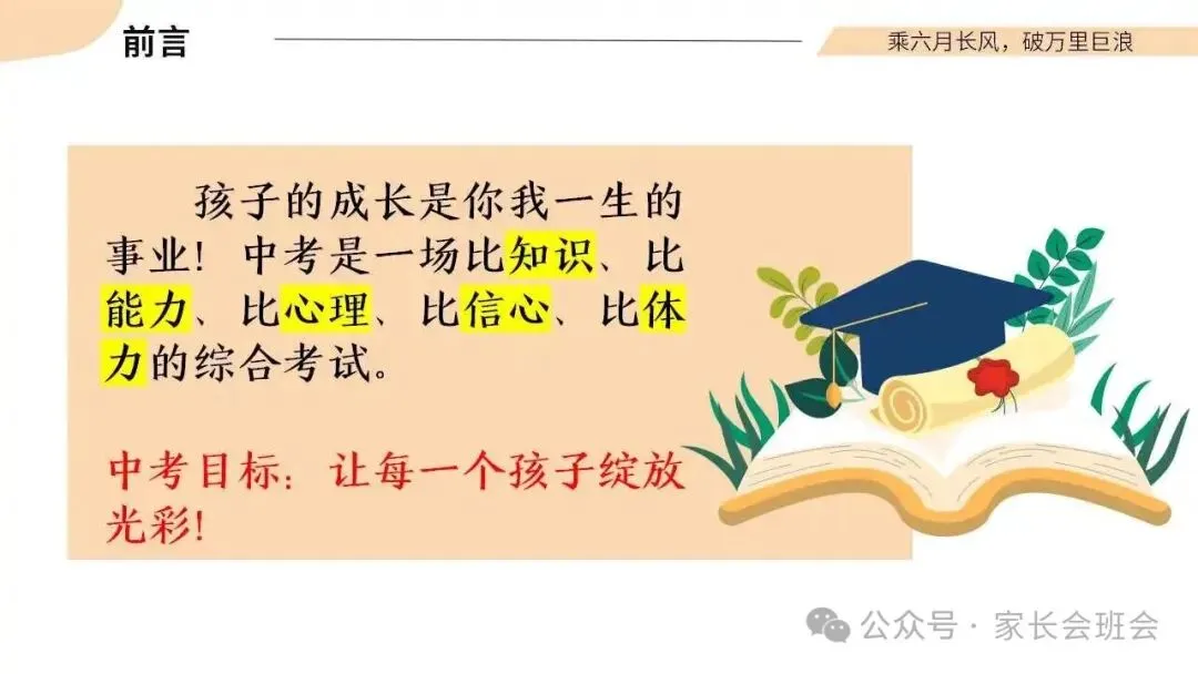 >初三(九年级)考前冲刺家长会ppt:同心共赴,中考加油!(含讲稿)