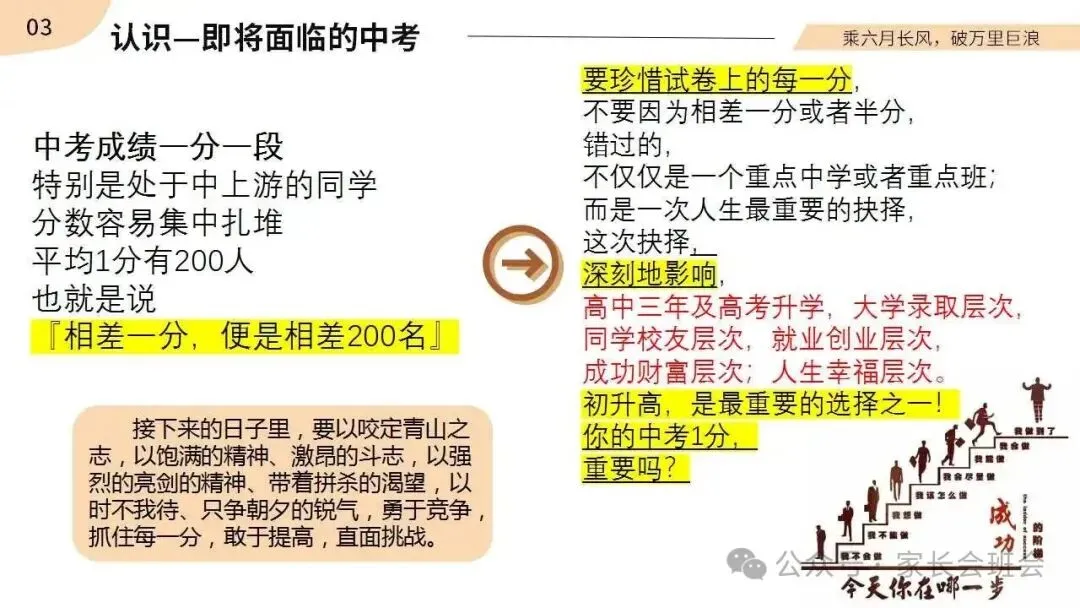 初三(九年级)考前冲刺家长会ppt:同心共赴,中考加油!(含讲稿)
