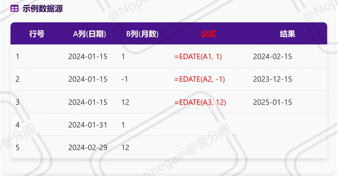 如果结果日期不存在(如2月30日),函数会返回该月最后一天。