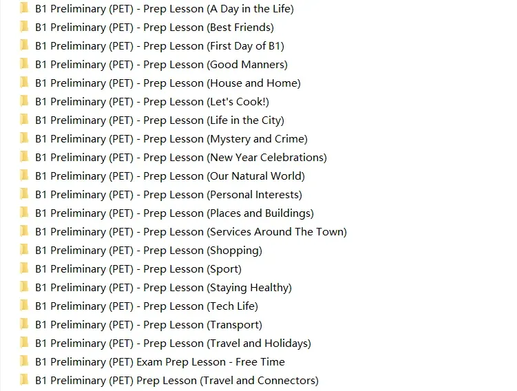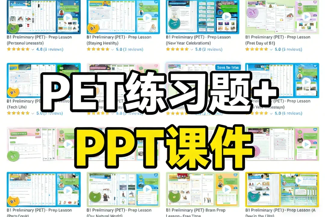 系统的 PET 备考资源。不是几张卷子,而是一整套包含 PPT教案、练习题的“原版课程”。话题覆盖科技、医疗、环境、旅行等21个 核心考点