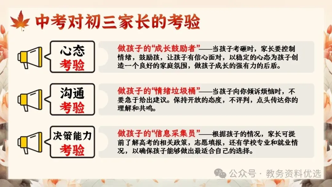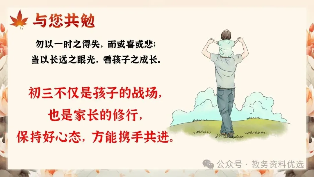 初三(九年级)考前冲刺家长会ppt:同心共赴,中考加油!(含讲稿)