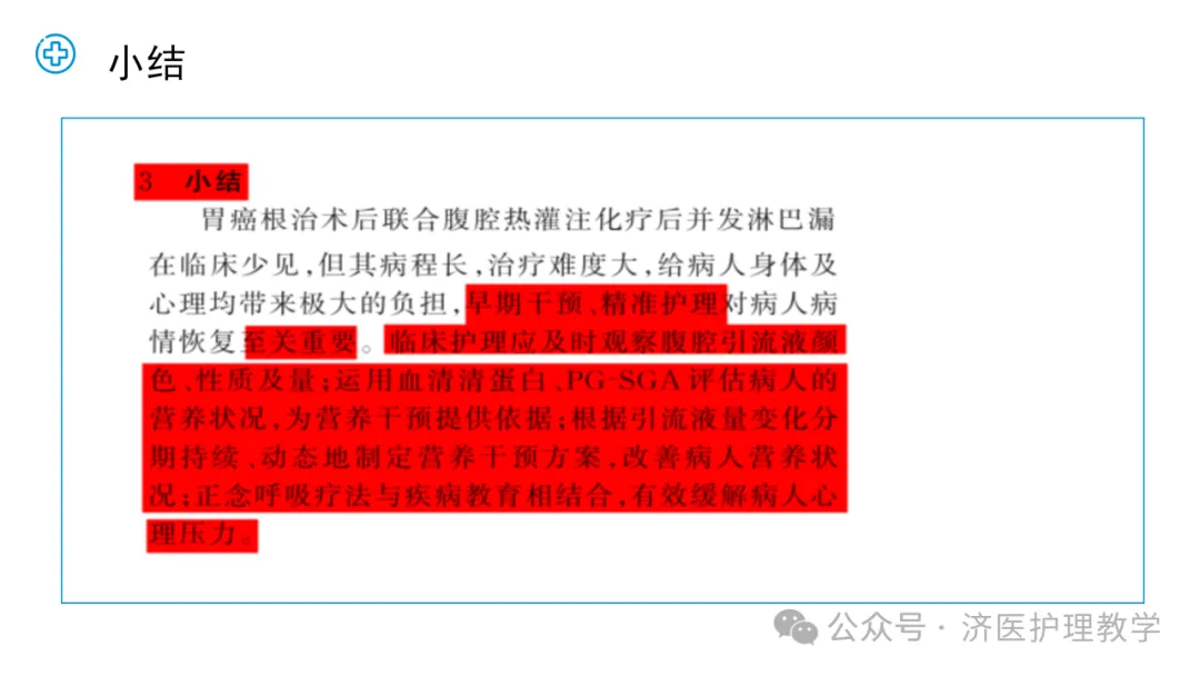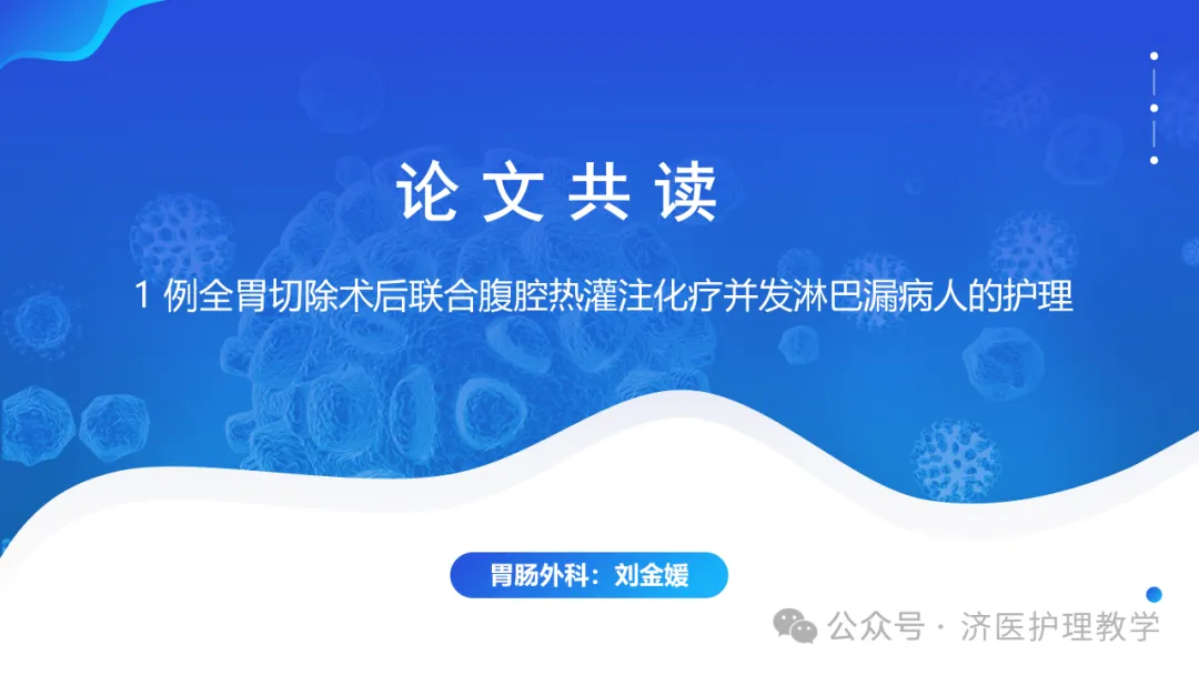 >【PPT】1例全胃切除术后联合腹腔热灌注化疗并发淋巴漏病人的护理