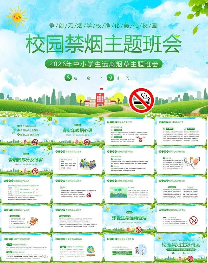 春季学期安全教育班会:控烟安全教育PPT——世界无烟日