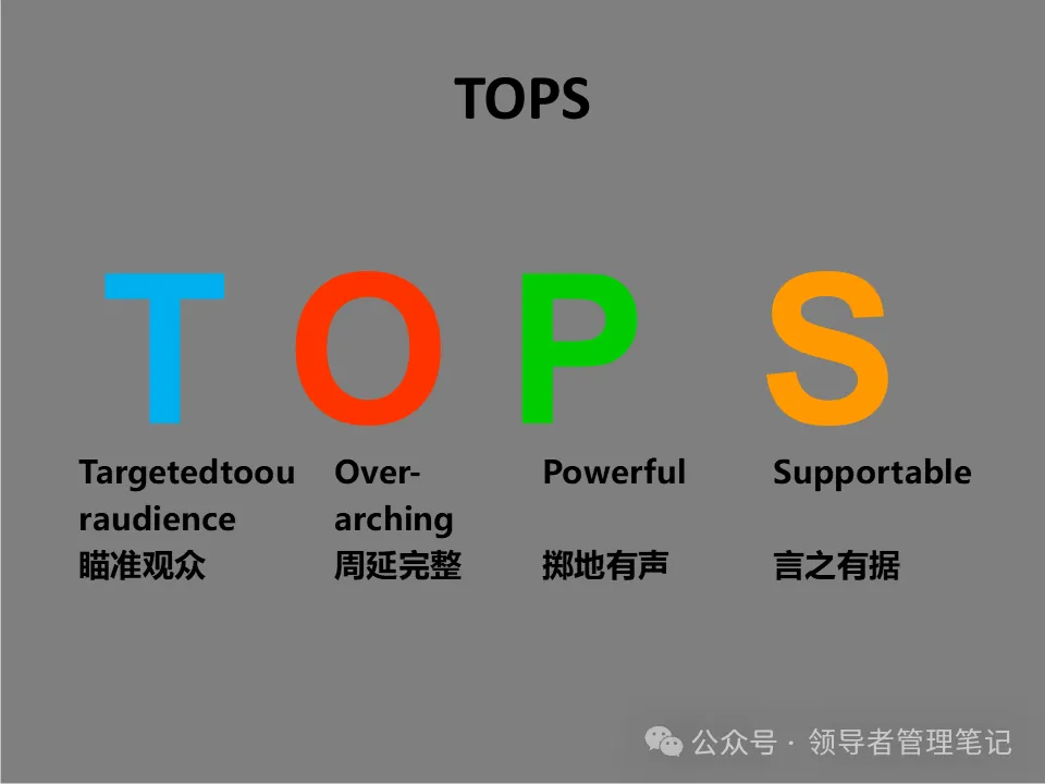 Targeted(瞄准观众):根据听众身份调整内容。如向财务汇报侧重“成本节约”,向市场部强调“用户体验”。