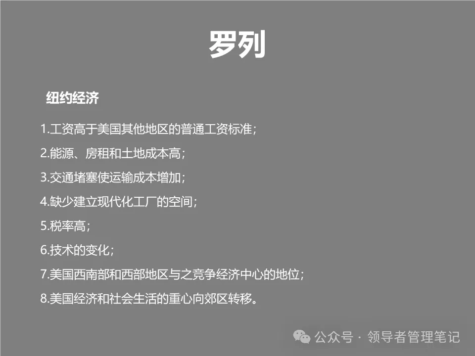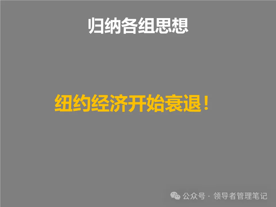 “相互独立、完全穷尽”的分类原则,确保分析无重叠、无遗漏。以纽约经济衰退分析为例: