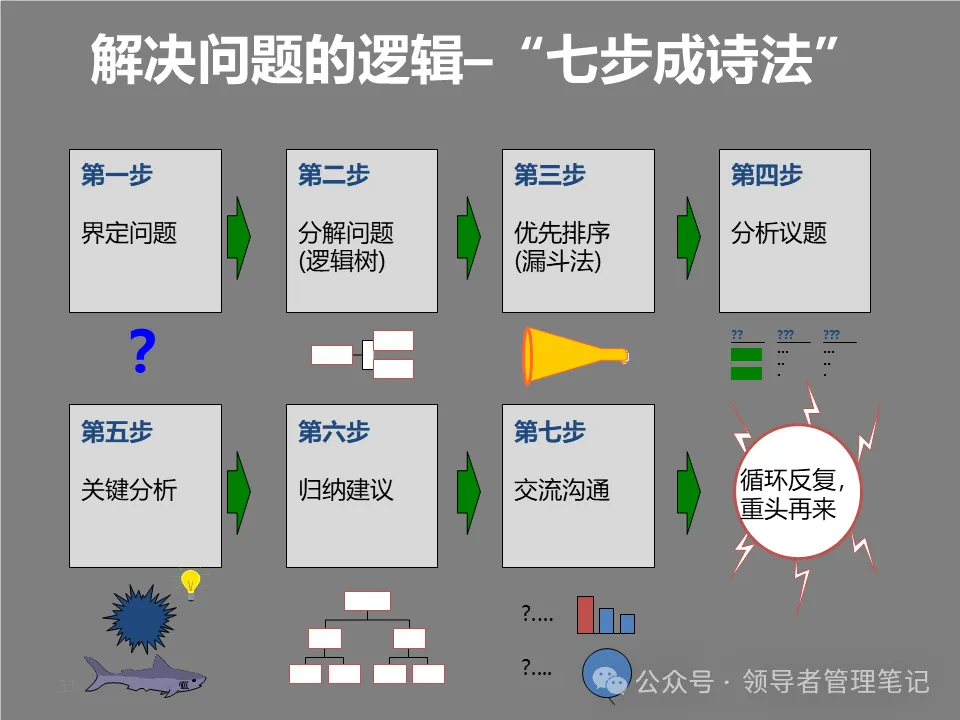 金字塔原理与七步成诗法的终极价值,在于将抽象思维转化为可操作的步骤。无论是写报告、做决策还是解决问题,这套框架都提供了“思维脚手架”,让每个人都能像咨询师一样思考——理性、系统、富有逻辑。