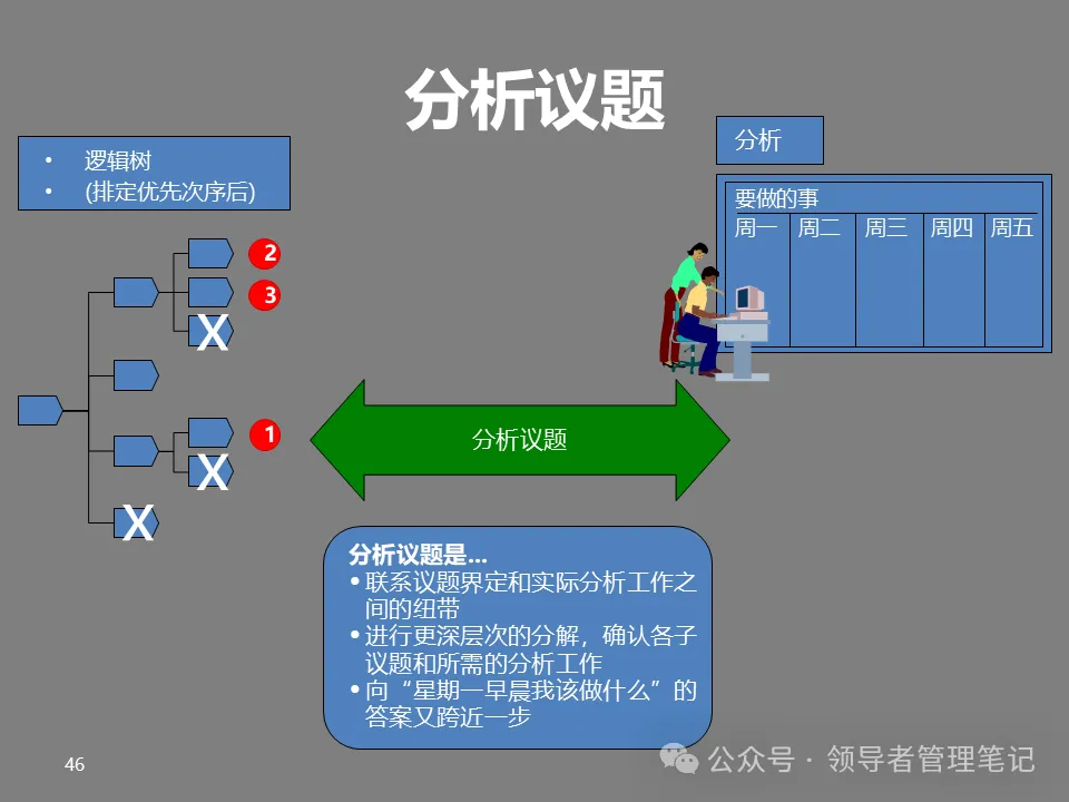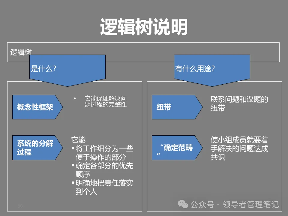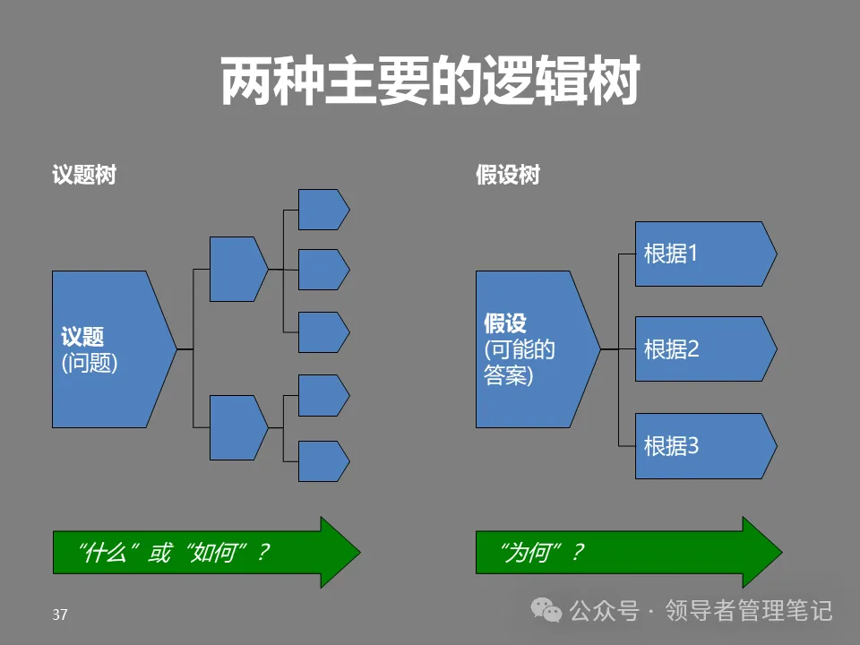 逻辑树将模糊问题转化为可操作的子议题,分为两种类型: