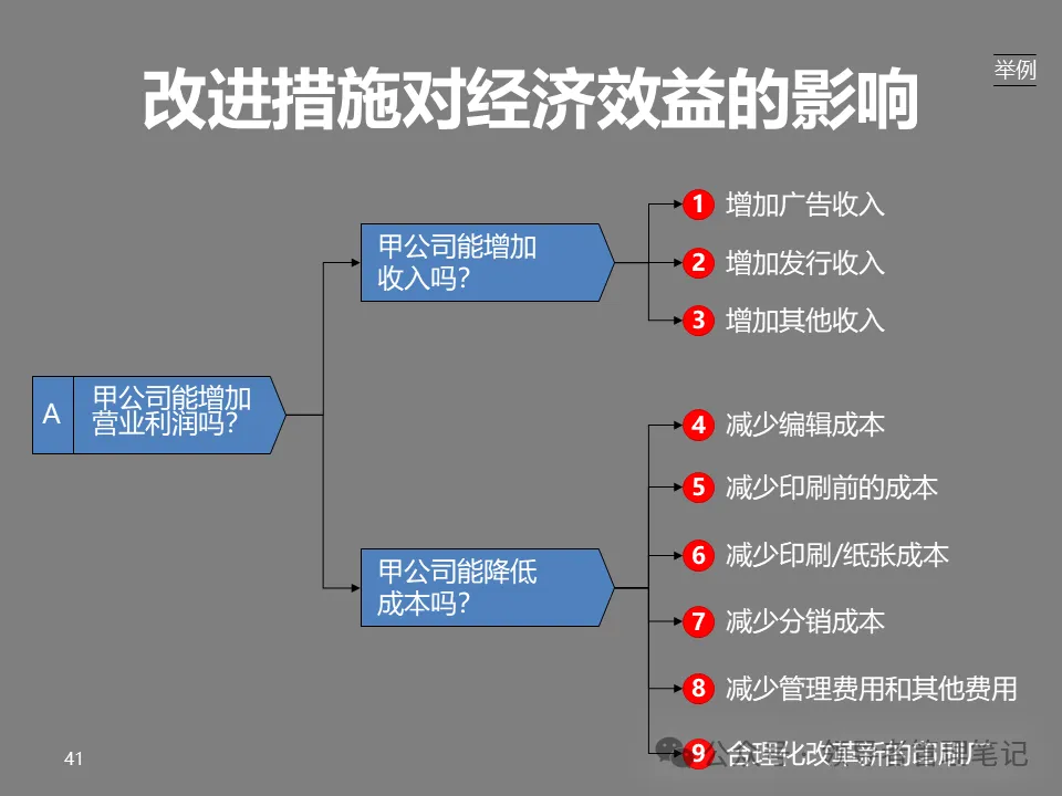 低影响+易实施(第四象限):如“减少管理费用”(影响8百万元/年),可在核心任务完成后处理。