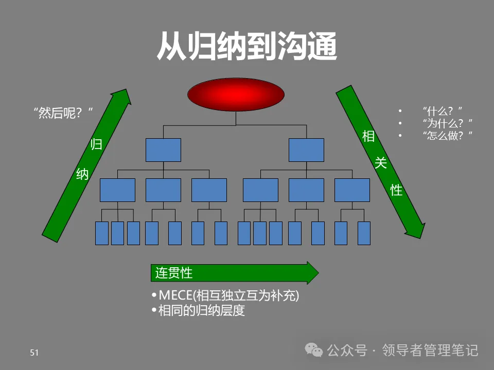 从句子到段落,再到章节、全文,每一层都是对下一层的概括。例如一篇报告的顶层是“建议投资LX20产品”,下一层展开为“市场需求增长”“技术优势”“成本可控”,再下一层分别用数据、案例支撑每个论点,形成“思想的层级化管理”。