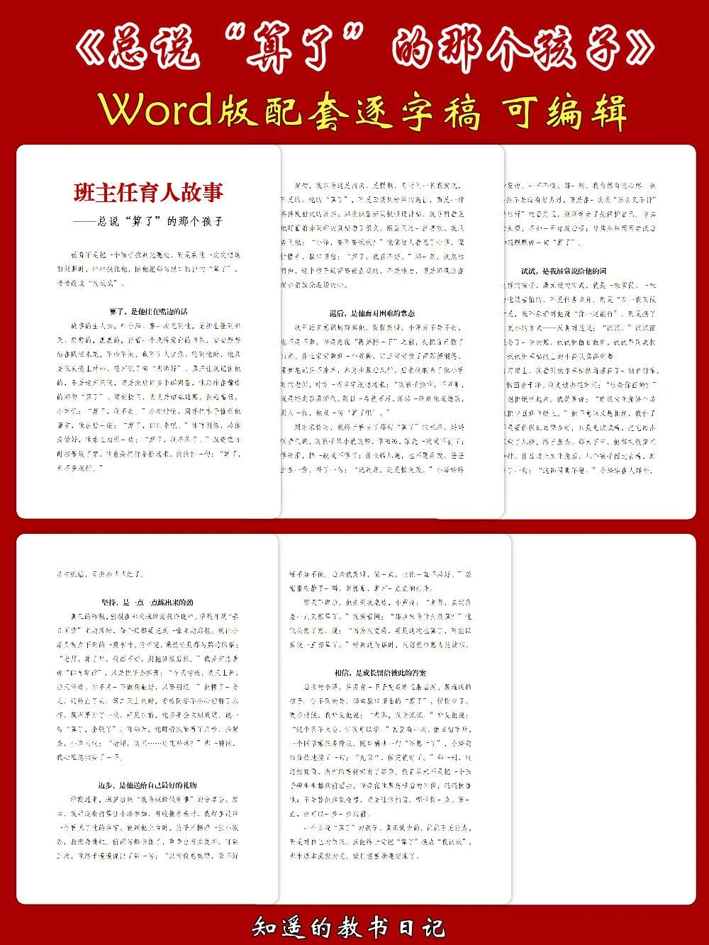 今天想和大家分享一份特别有温度的班主任育人案例PPT——《育人故事——总说“算了”的那个孩子》。它讲述的,或许正是我们很多人在工作中都会遇到的那一类学生。