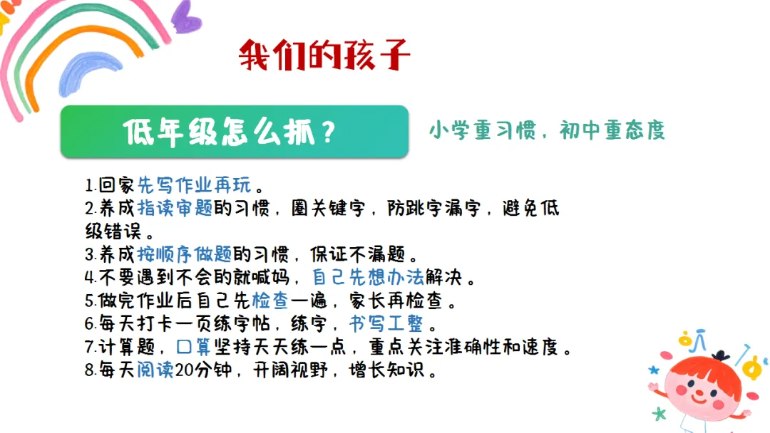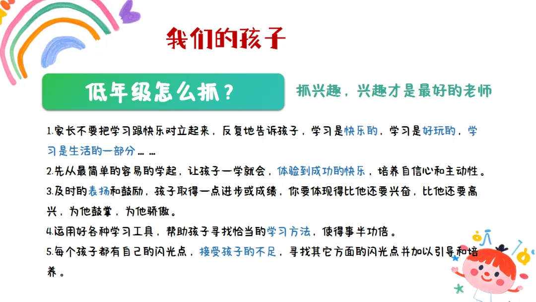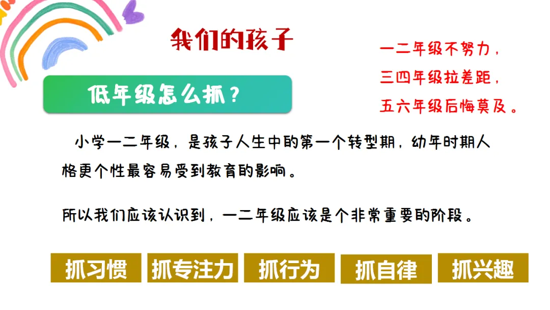贴合低年级孩子成长特点,从班级情况、孩子特质到语文学习、家校共育,逻辑超清晰,还自带教育理念共鸣感。