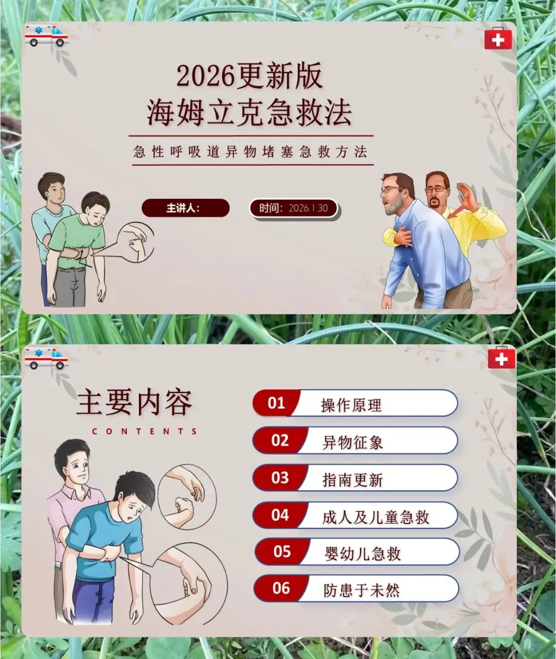 大家好,今天讲的是海姆立克急救法,2026 年的更新版本,主要就是教大家怎么处理急性呼吸道异物堵塞的情况。