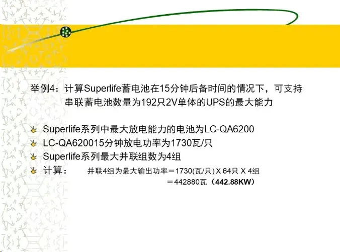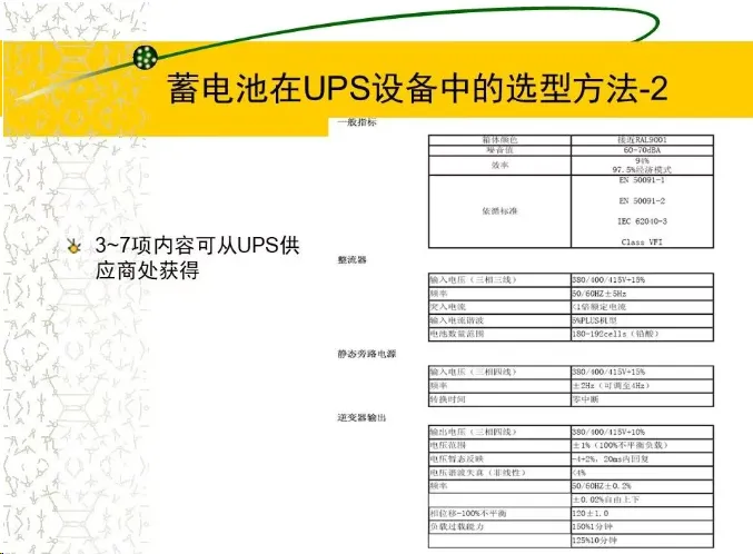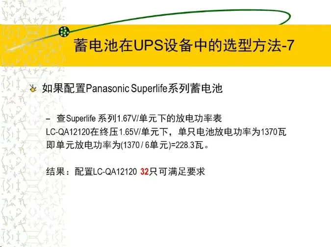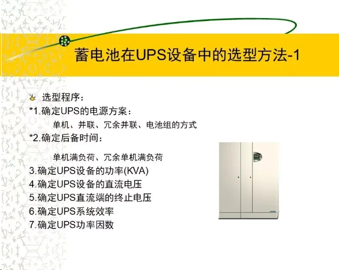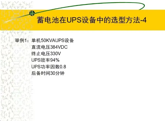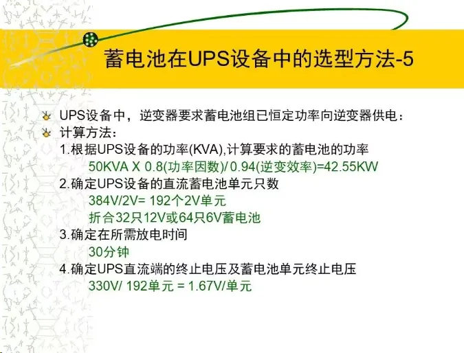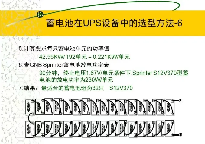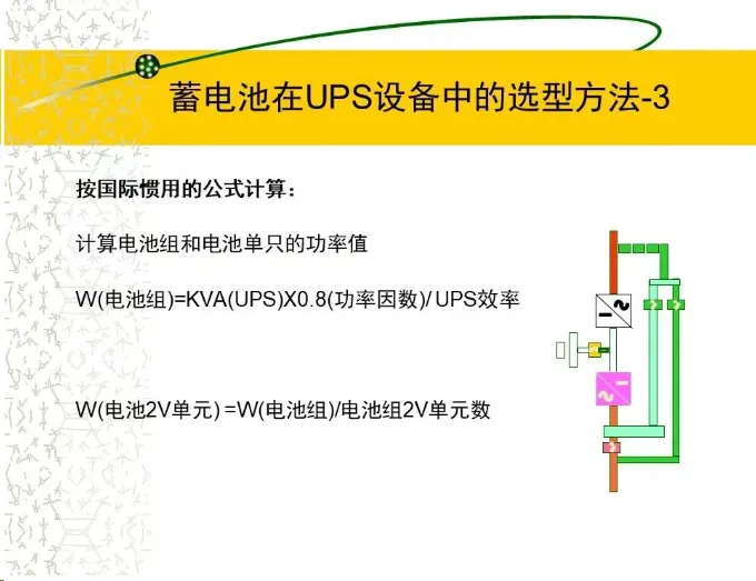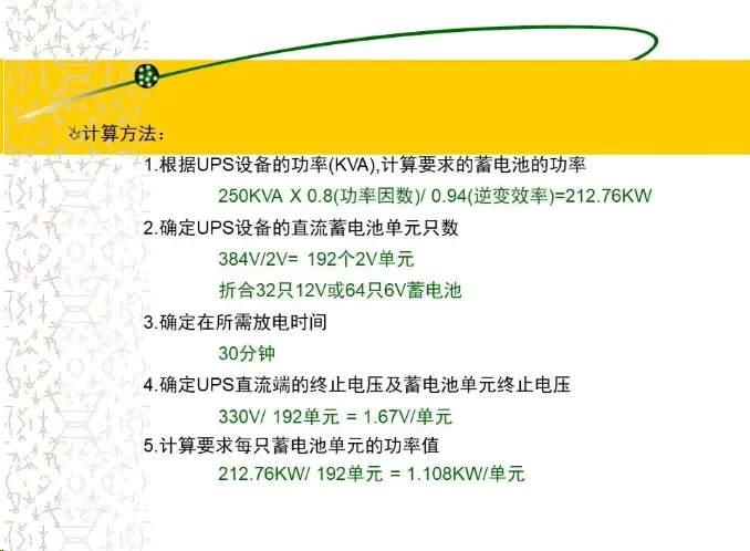 1.根据UPS设备的功率(KVA),计算要求的蓄电池的功率