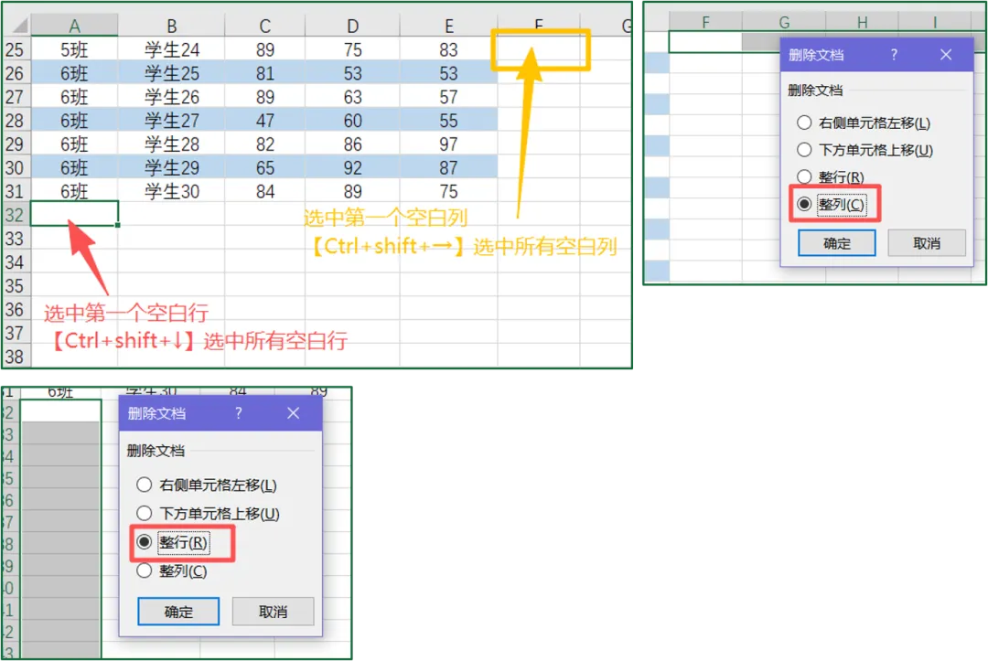 ③依次【右键-删除-删除整行】(删除了所有空白行);