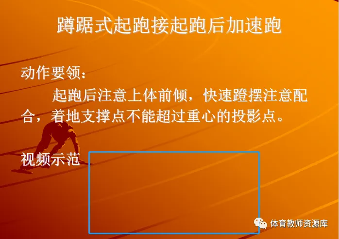 希望通过前面的几个练习方法能让同学们更好的学习快速跑中起跑后的加速跑技术。