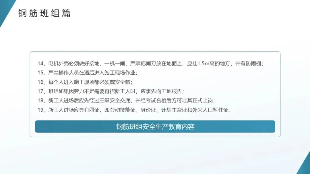>【ppt】建筑工地各班组安全教育培训教材(23页)