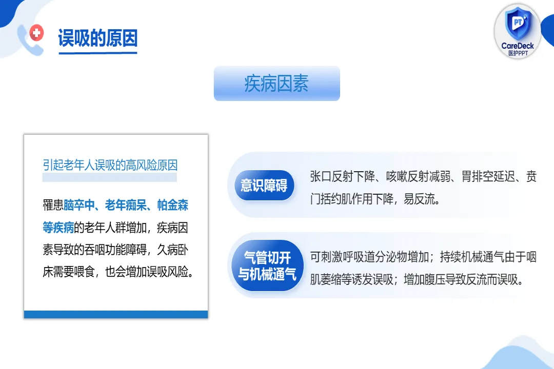 🍎内容:老年人误吸的预防及处理-医护PPT模版