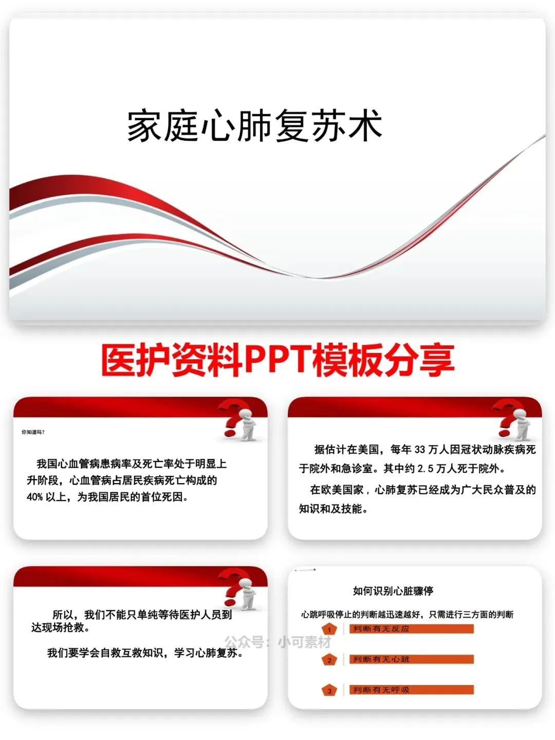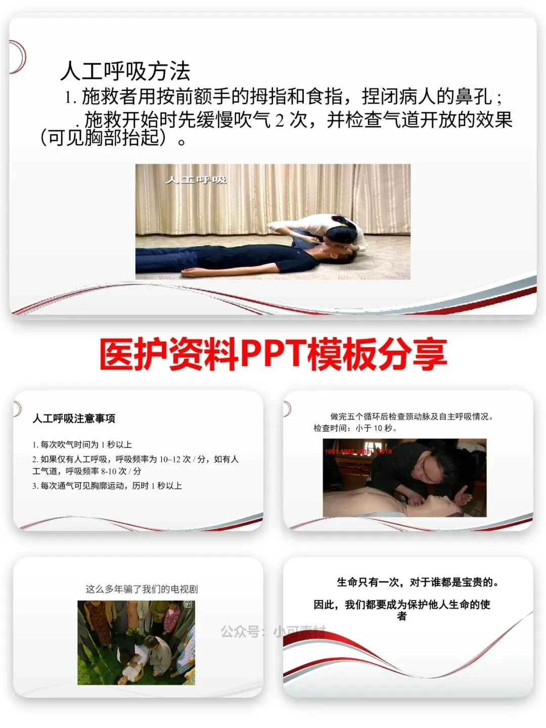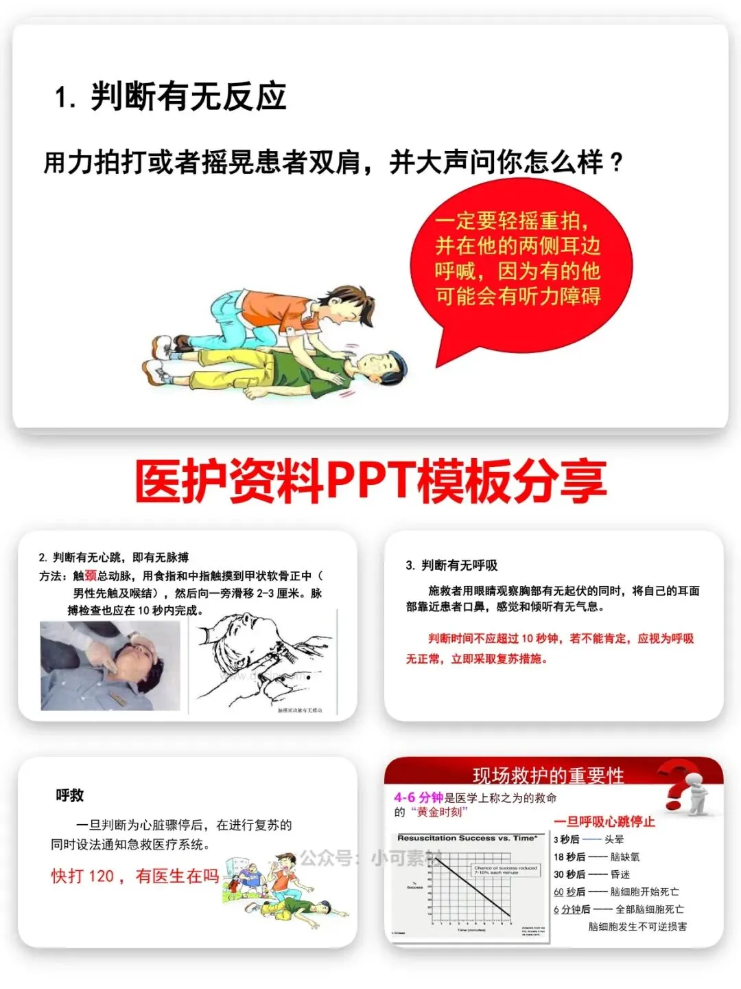 胸外按压是CPR最重要环节,标准操作决定成败。PPT详细讲解定位、手法、深度、频率,标注常见错误,避免按折肋骨、按压无效等问题。