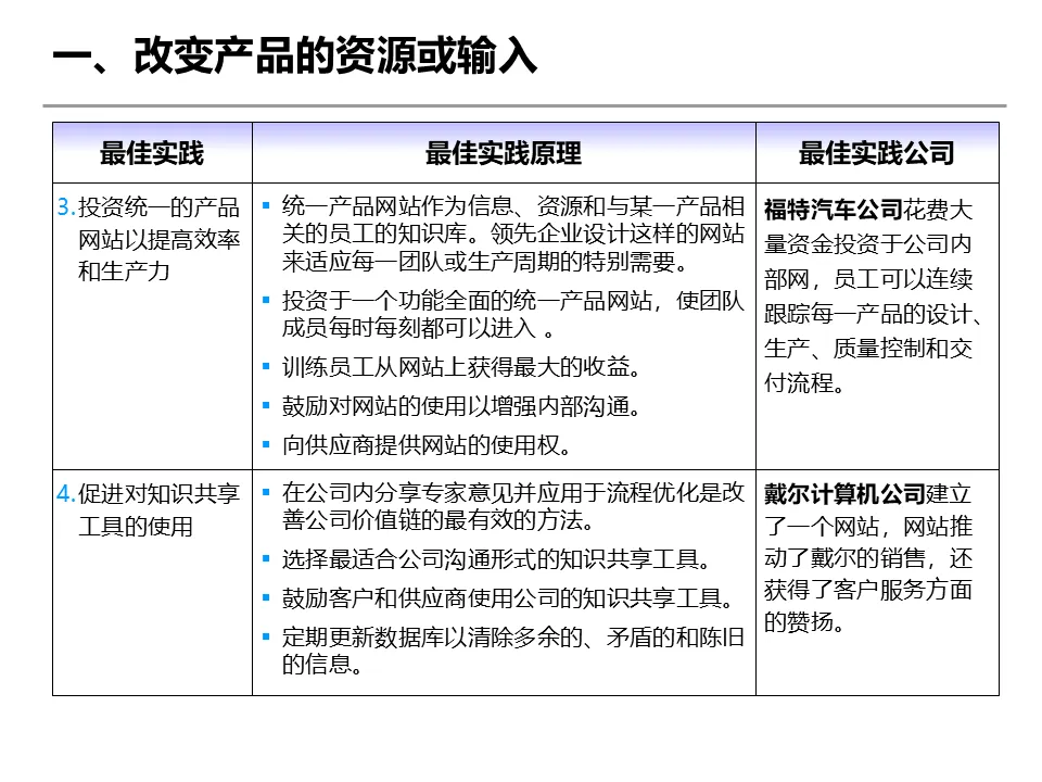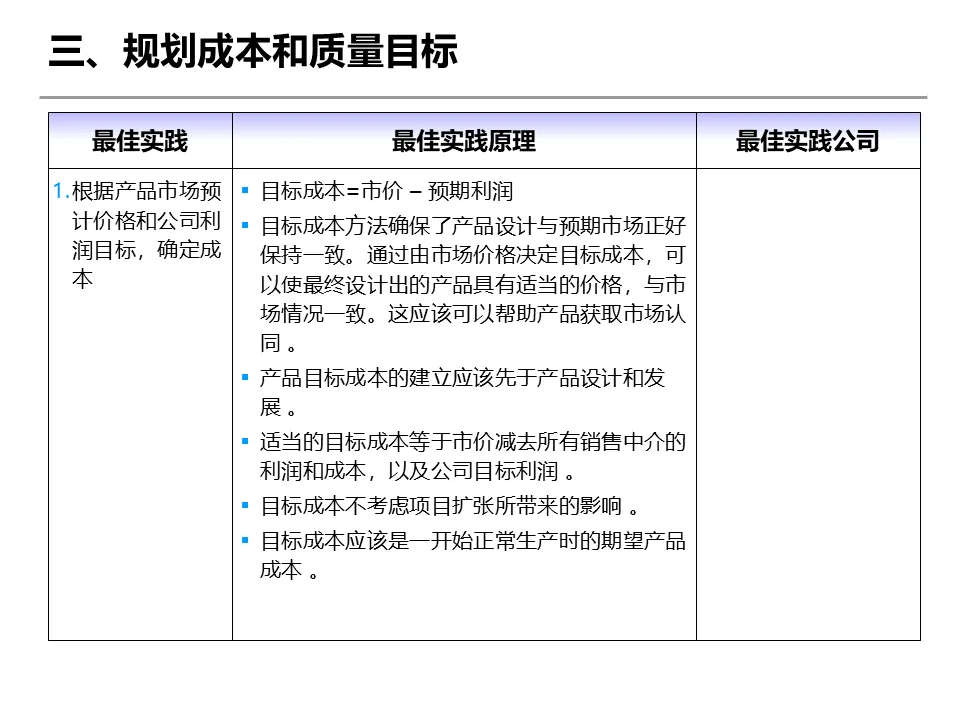 该领域确保创新有序转化为市场成功。实践涵盖:设计鼓励创新的战略与组织系统;通过跨部门小组、深度市场调研将客户需求精准转化为产品定义;运用目标成本法规划成本与质量;在样品设计、测试中融入生产性与竞争性考量;以多阶段系统和客户信息融入管理全流程;战略性管理知识产权;并为量产及现有产品改进做好准备,实现创新的高效、低风险商业化。
