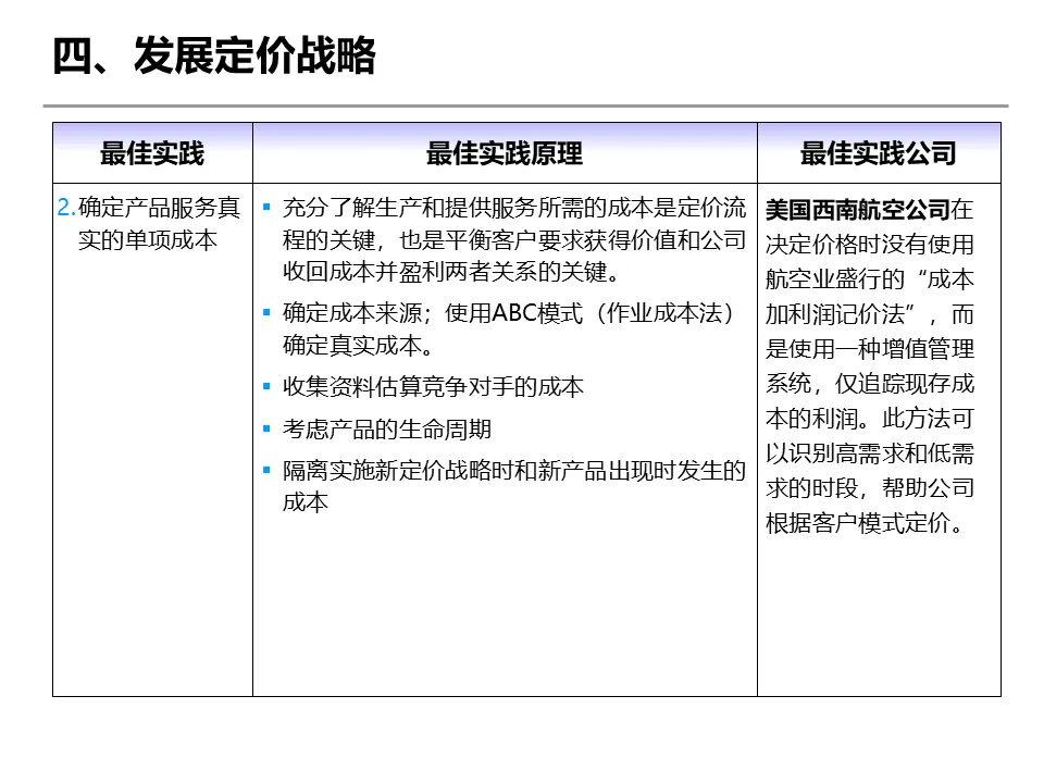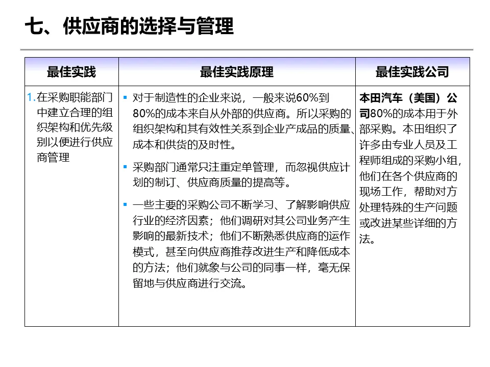 此模块连接产品与客户。最佳实践包括:发展以品牌和利润为中心的市场营销战略;利用客户信息数据库精准确定细分市场;选择并管理能提供价值的分销渠道与伙伴;发展基于产品价值与真实成本的定价战略;通过协同、多方法提高销售预测准确性;提升销售队伍的专业性与客户伙伴关系;整合互联网销售并优化客户订单管理流程,实现营销投入回报最大化。