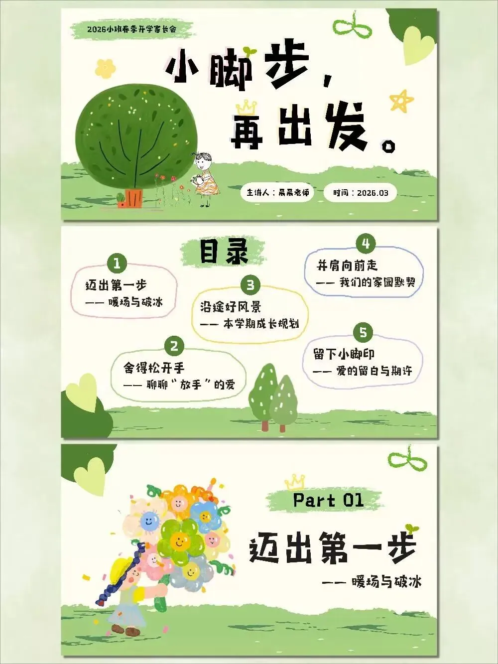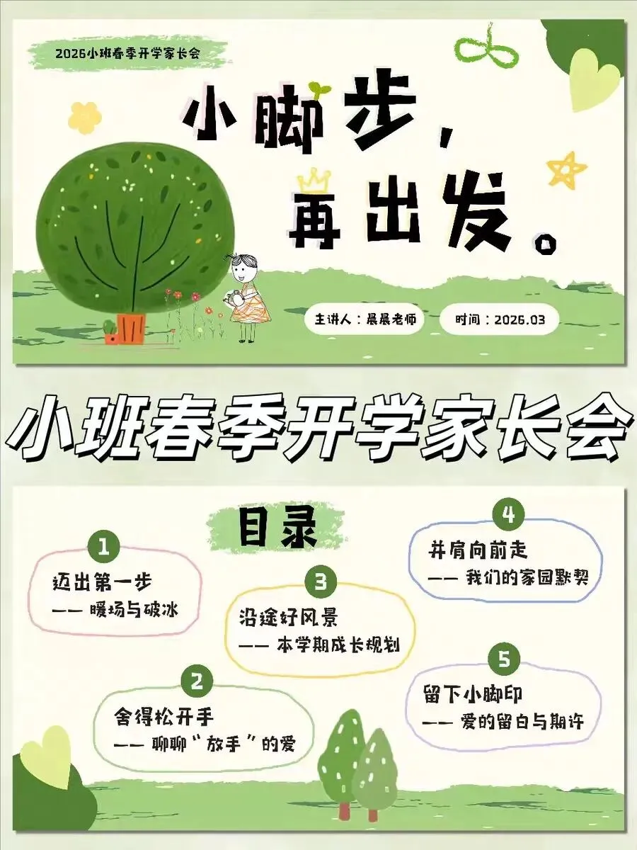 >2026小班春季家长会PPT+发言稿(小脚步,再出发)