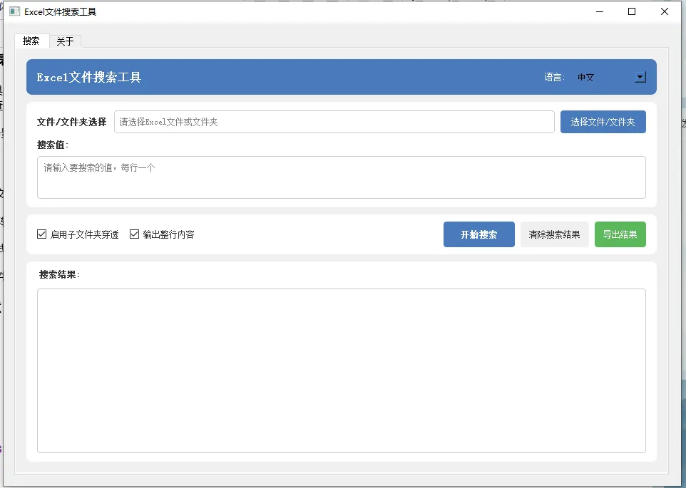 - 多文件搜索:支持同时搜索单个Excel文件或整个文件夹(包括子文件夹)中的所有Excel文件