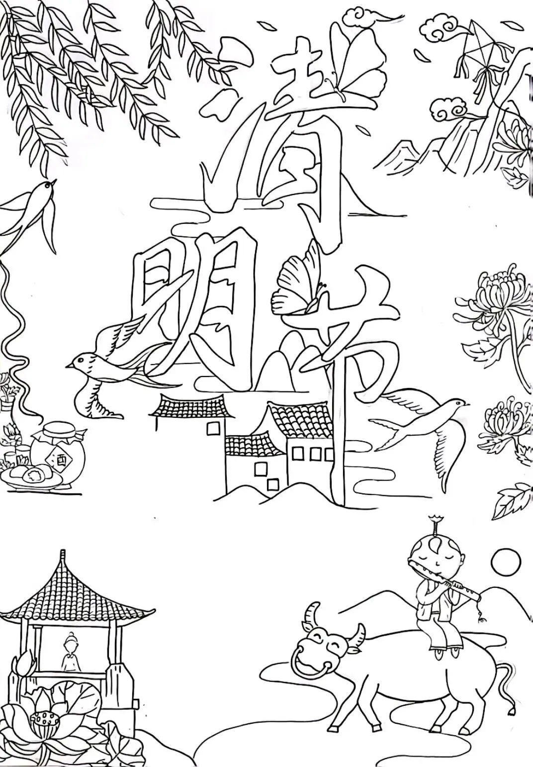 【清明节】主题班会ppt手抄报线稿素材(精品素材超全)电子版高清可打印