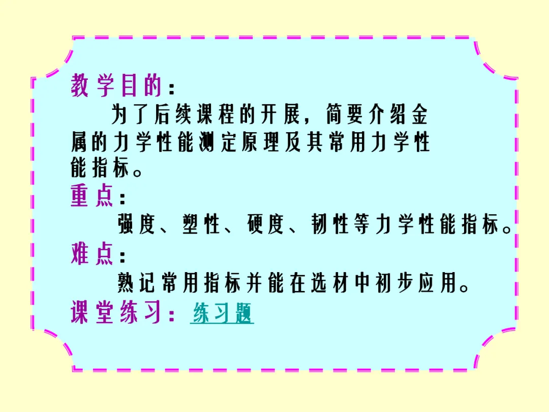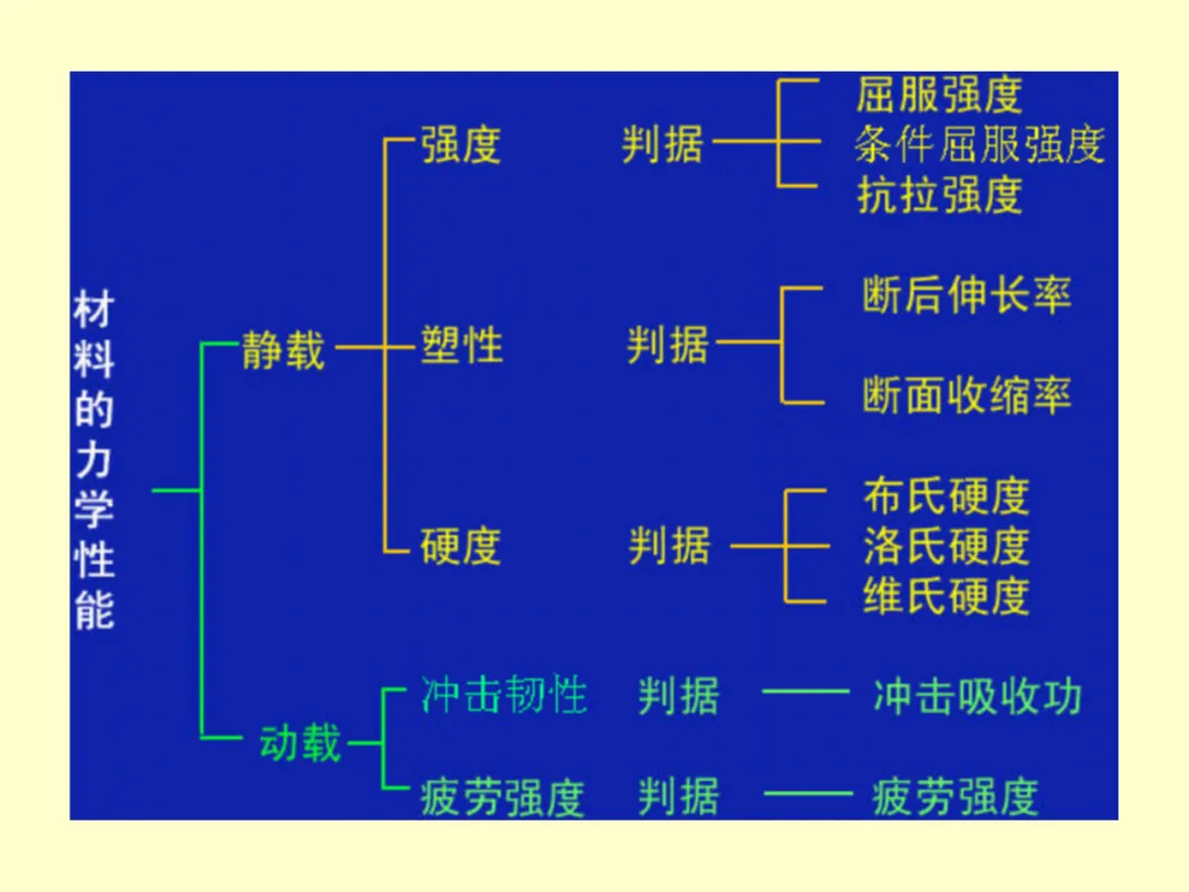 评价材料性能的核心指标包括力学性能(如强度、硬度、塑性、韧性)、物理化学性能以及加工性能(如可铸造性、可焊性)。