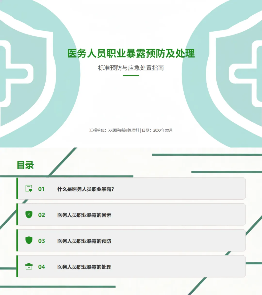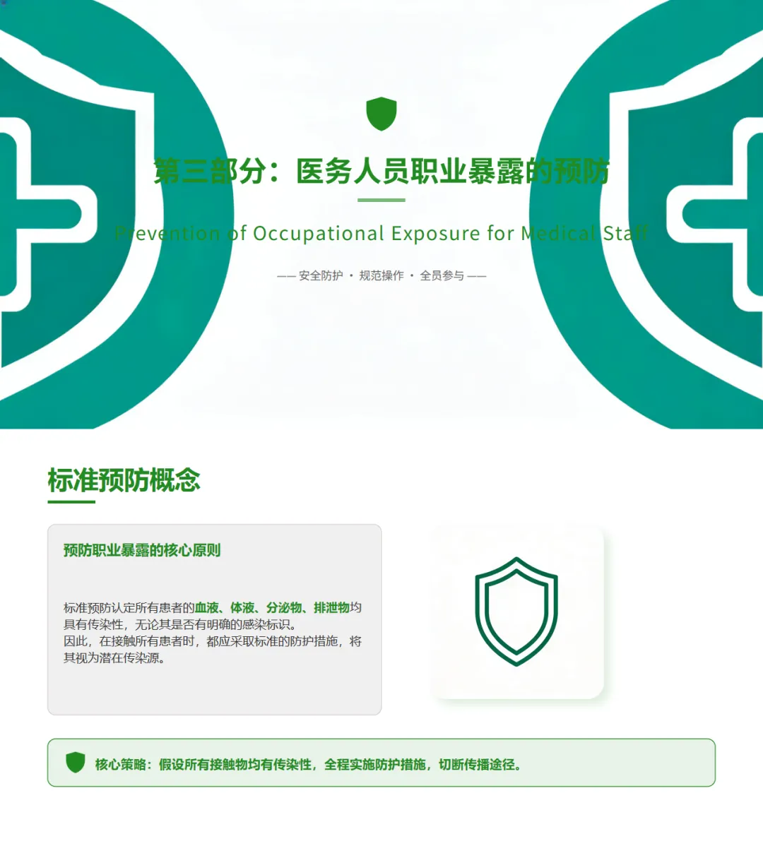 【PPT课件】医务人员职业暴露预防及处理全攻略(附详细 PPT 大纲与处理流程)