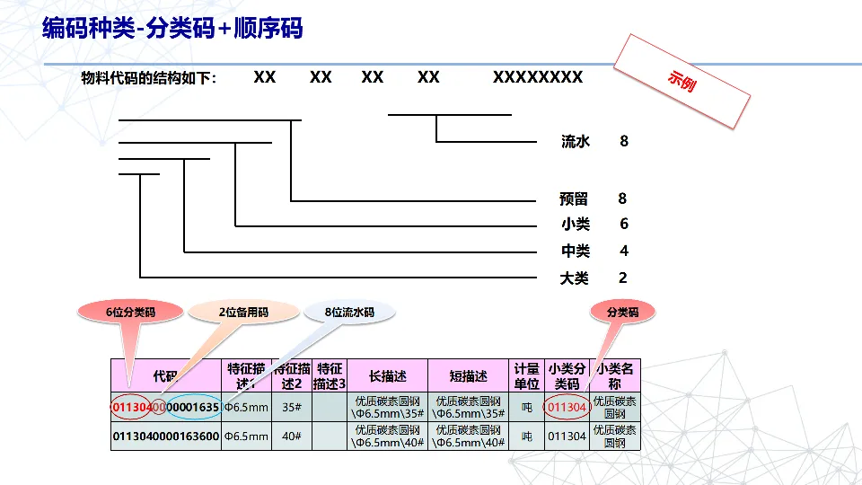 企业常用组合编码方式,兼顾分类可读性与管理便捷性,适配物料、客户、供应商等不同对象。