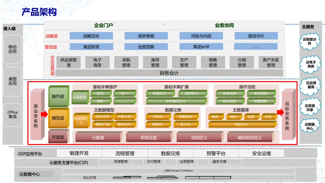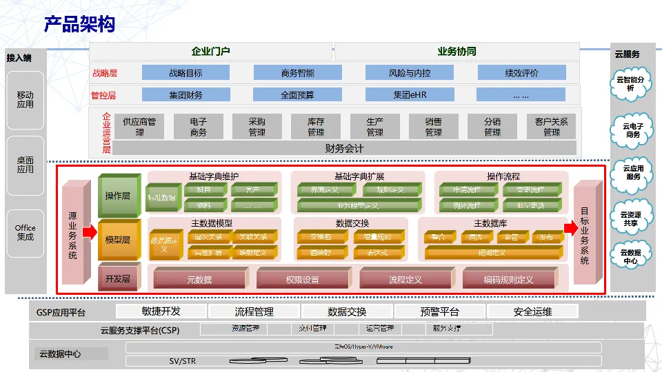 主数据平台采用分层架构,覆盖模型管理、流程管理、数据交换、权限控制、质量监控等能力。