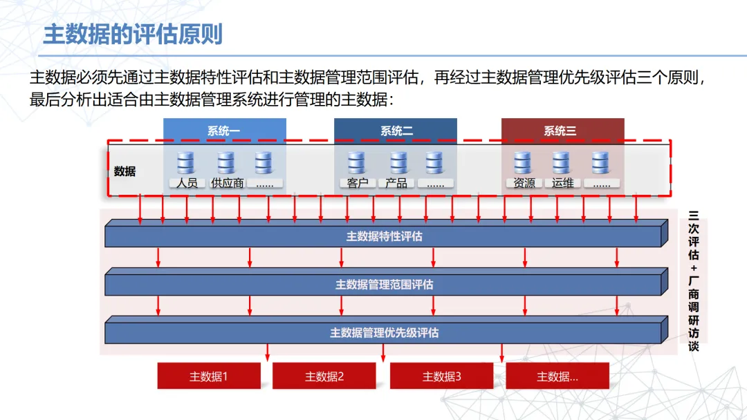 主数据识别采用三层评估机制,先筛选、再定范围、后排优先级,确保识别结果科学可行。
