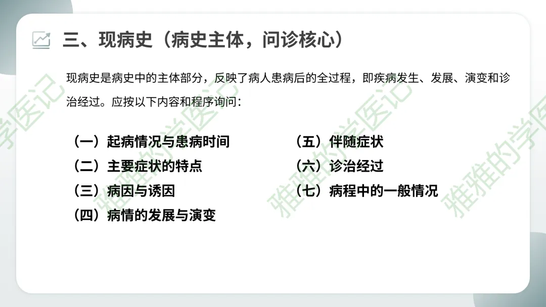 三、现病史(病史主体,问诊核心)