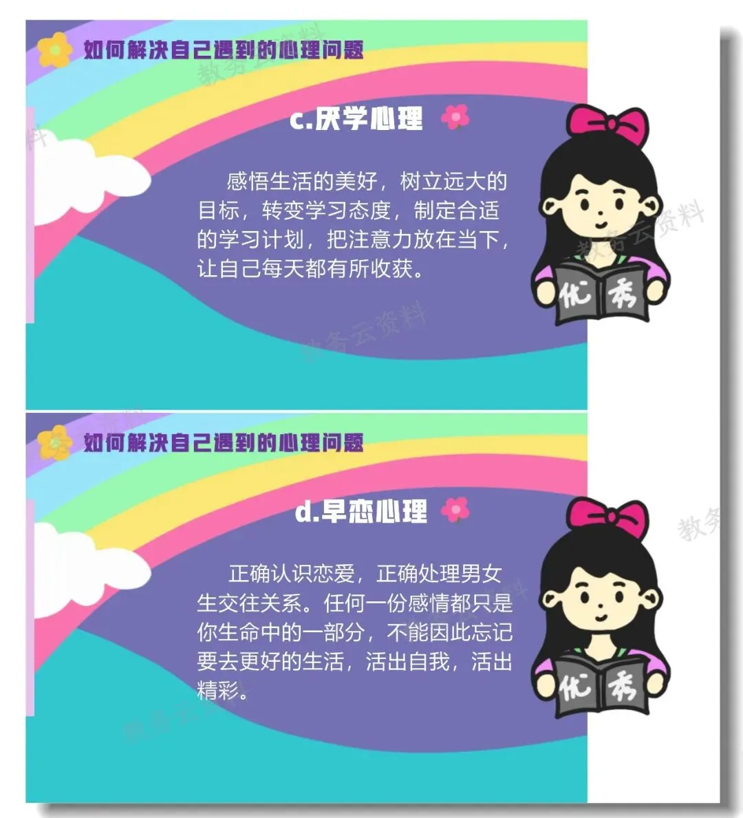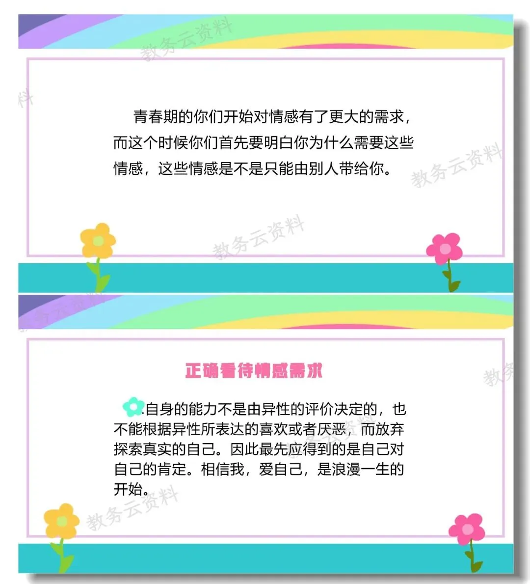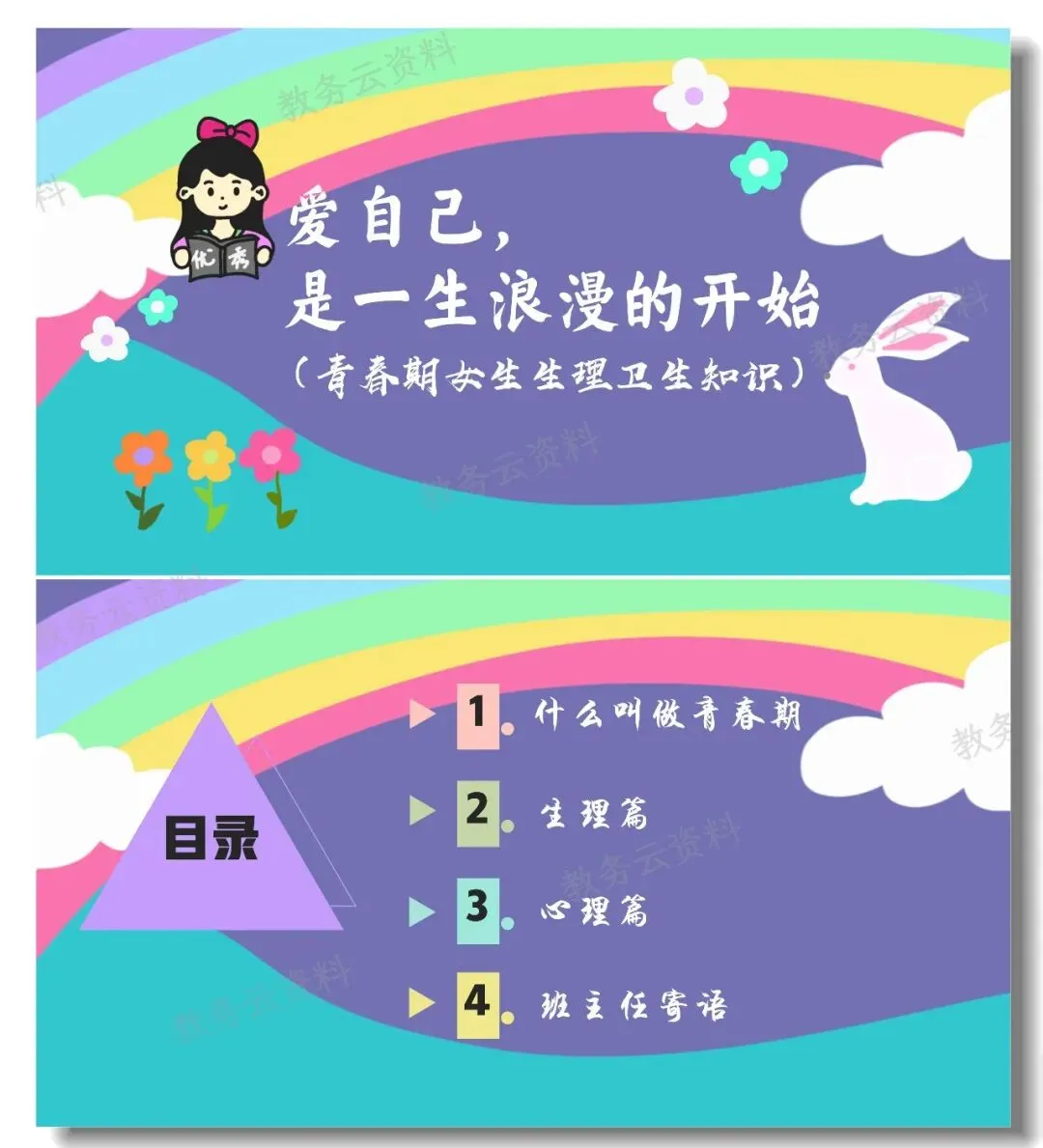 今天分享的是一堂专为青春期女生设计的生理与心理教育班会课,主题是《爱自己,是一生浪漫的开始》,配套班主任发言稿。