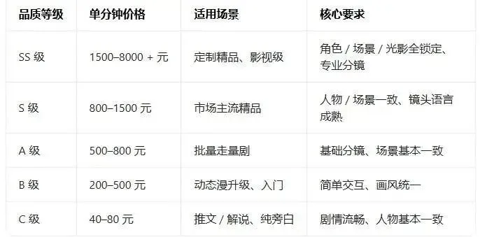 AI漫剧品质等级分类及制作价格(采访业内人士整理)“蓝鹭AI漫剧”导演、制片人孔先生介绍:“AI静态图片+AI旁白音”的形式,在业内也被俗称“PPT漫”,“机跑PPT漫制作成本非常低,承制方卖给甲方也就几毛钱一分钟。目前国内的短剧市场已经较为成熟了,这种形式不再是行业主流,已经逐渐被淘汰了。但部分既做承制也做发行的个人创业者或小公司,由于资金有限,很难推出精品剧,就通过低品质漫剧进行小成本试水,靠‘钩子剧情’把用户留住,进行商业变现。”