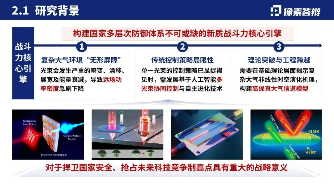 PPT 控制在 18 页左右,适配 12-15 分钟汇报时长;字体≥28 号,以黑白灰为主色调;图表标注数据来源,★标注关键性能指标(如光束质量、传输效率、环境适应性);每页≤3 点核心信息,不添加任何动画,全程聚焦学术本质与技术突破。
