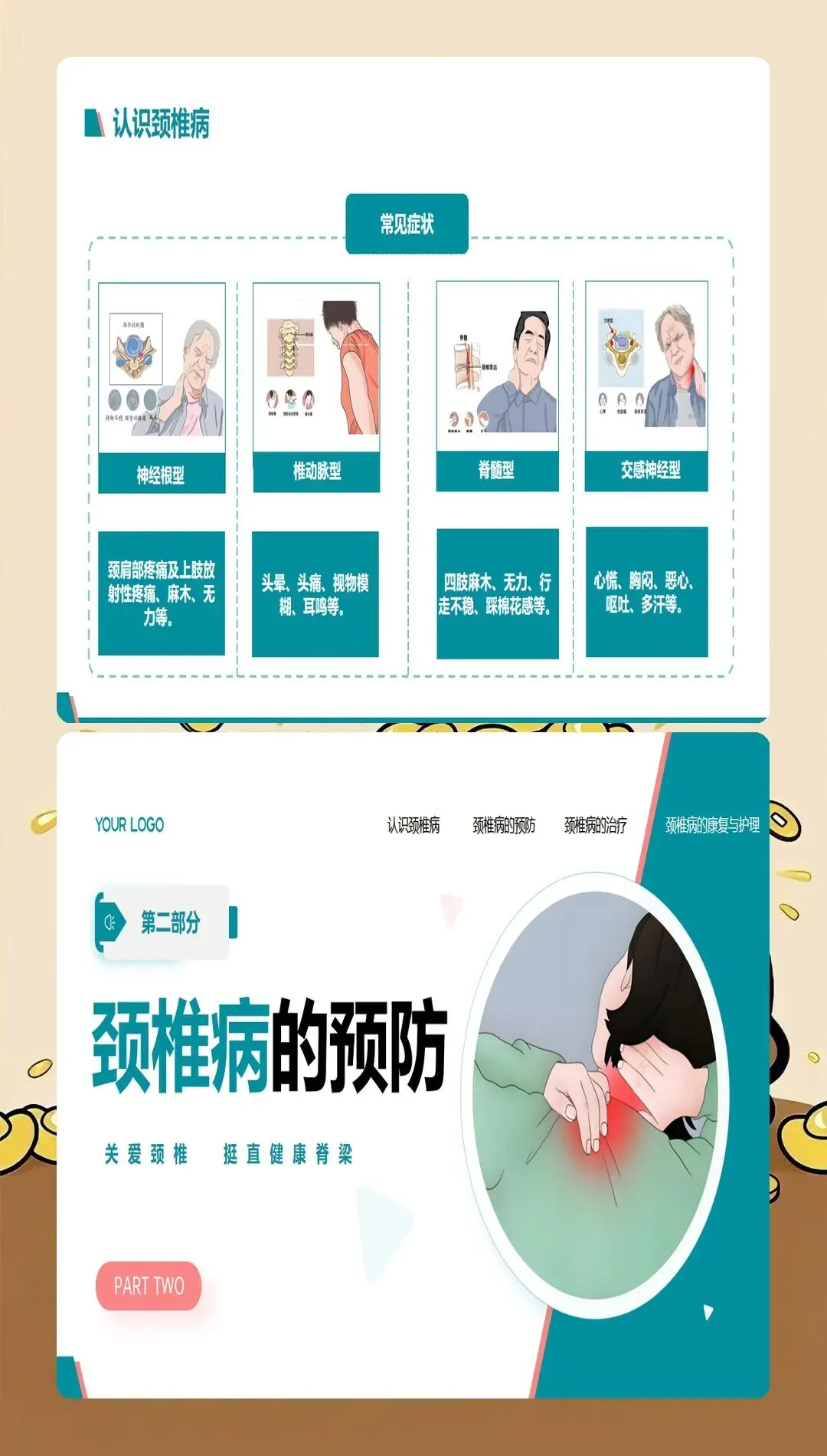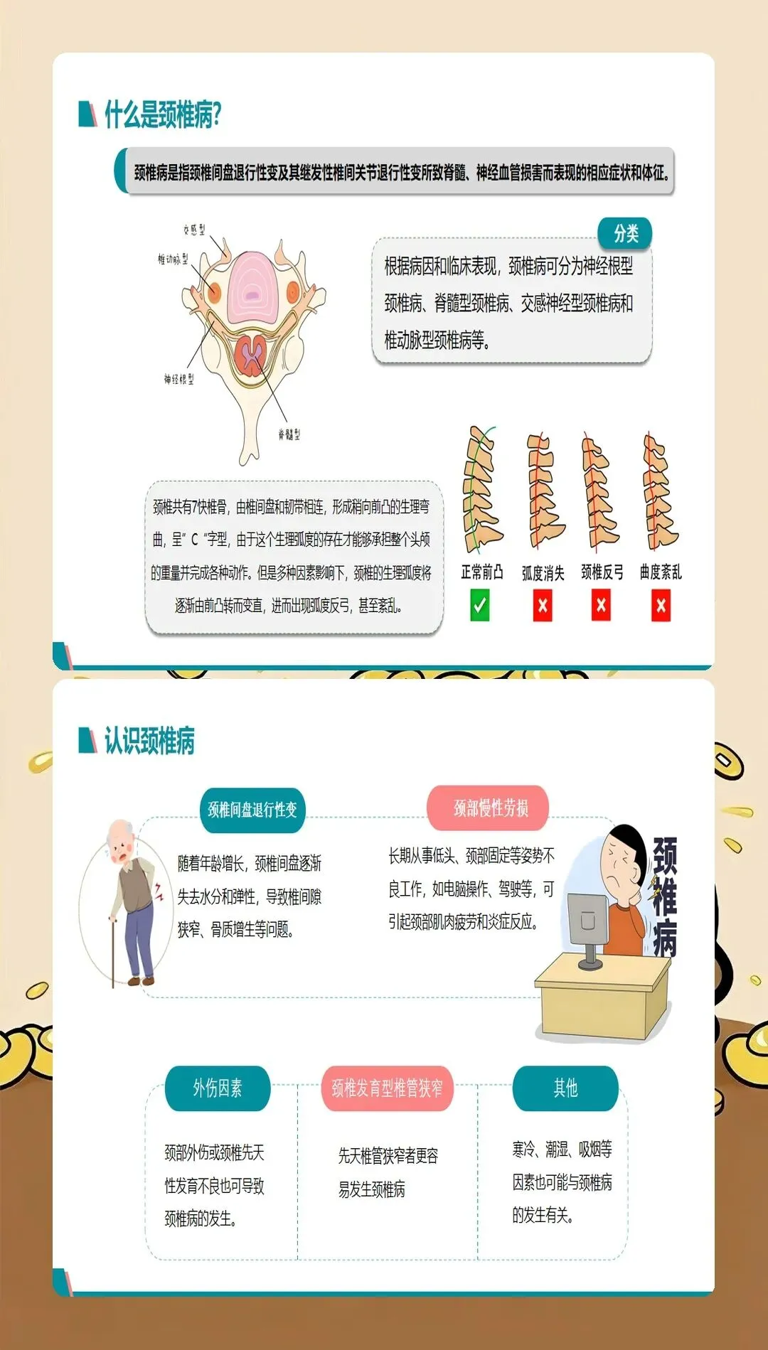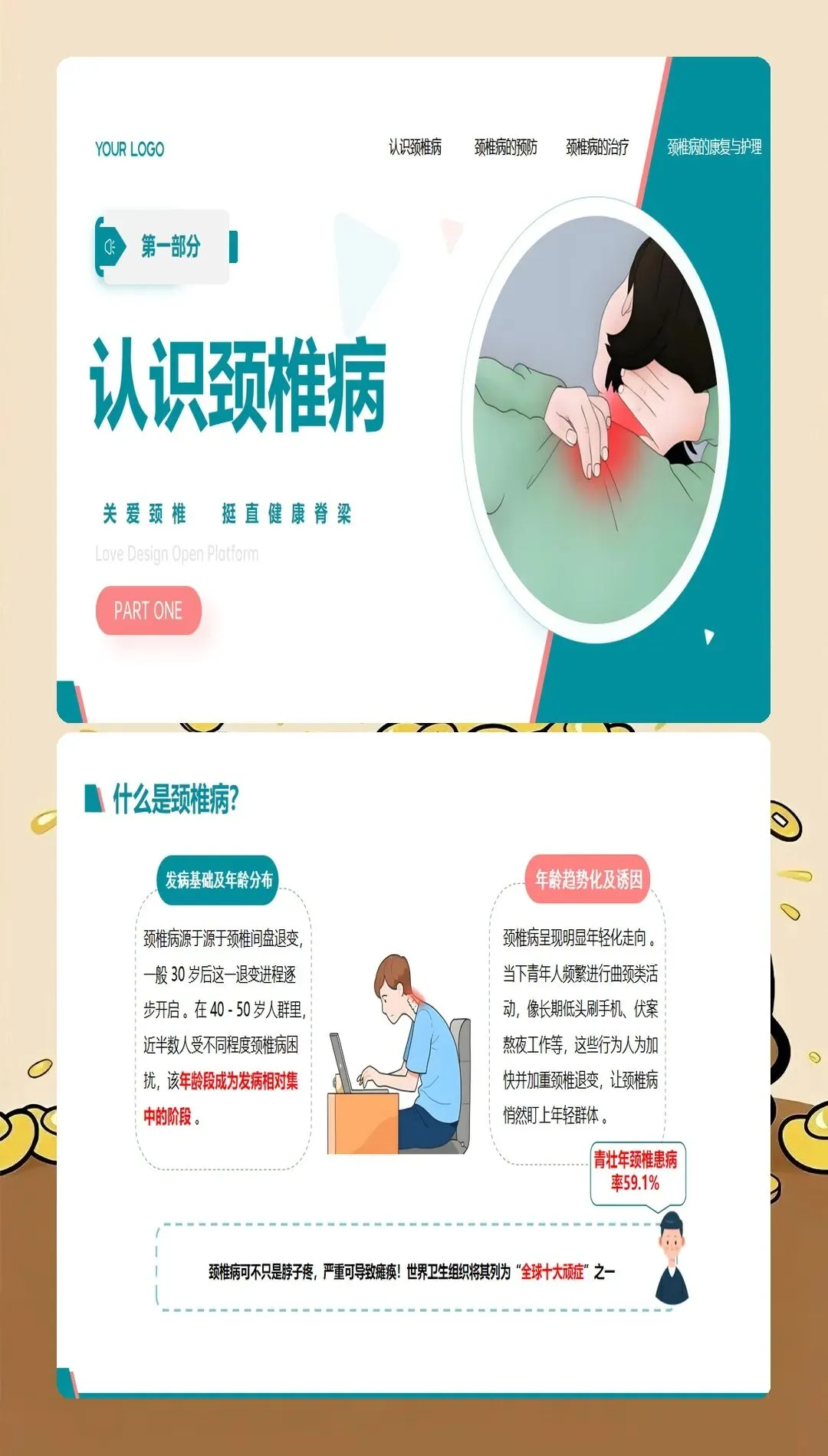 颈椎病是现代社会的常见疾病,发病率呈逐年上升趋势,且发病年龄逐渐年轻化。过去颈椎病多发于中老年人,现在很多年轻人由于长期使用电脑、手机等电子设备,也出现了不同程度的颈椎问题。颈椎病的主要症状包括颈肩疼痛、上肢麻木、头晕头痛、视觉疲劳等,严重影响患者的生活质量和工作效率。作为医护人员,我们不仅要治疗颈椎病,更要做好健康宣教工作,帮助患者预防和管理颈椎病。