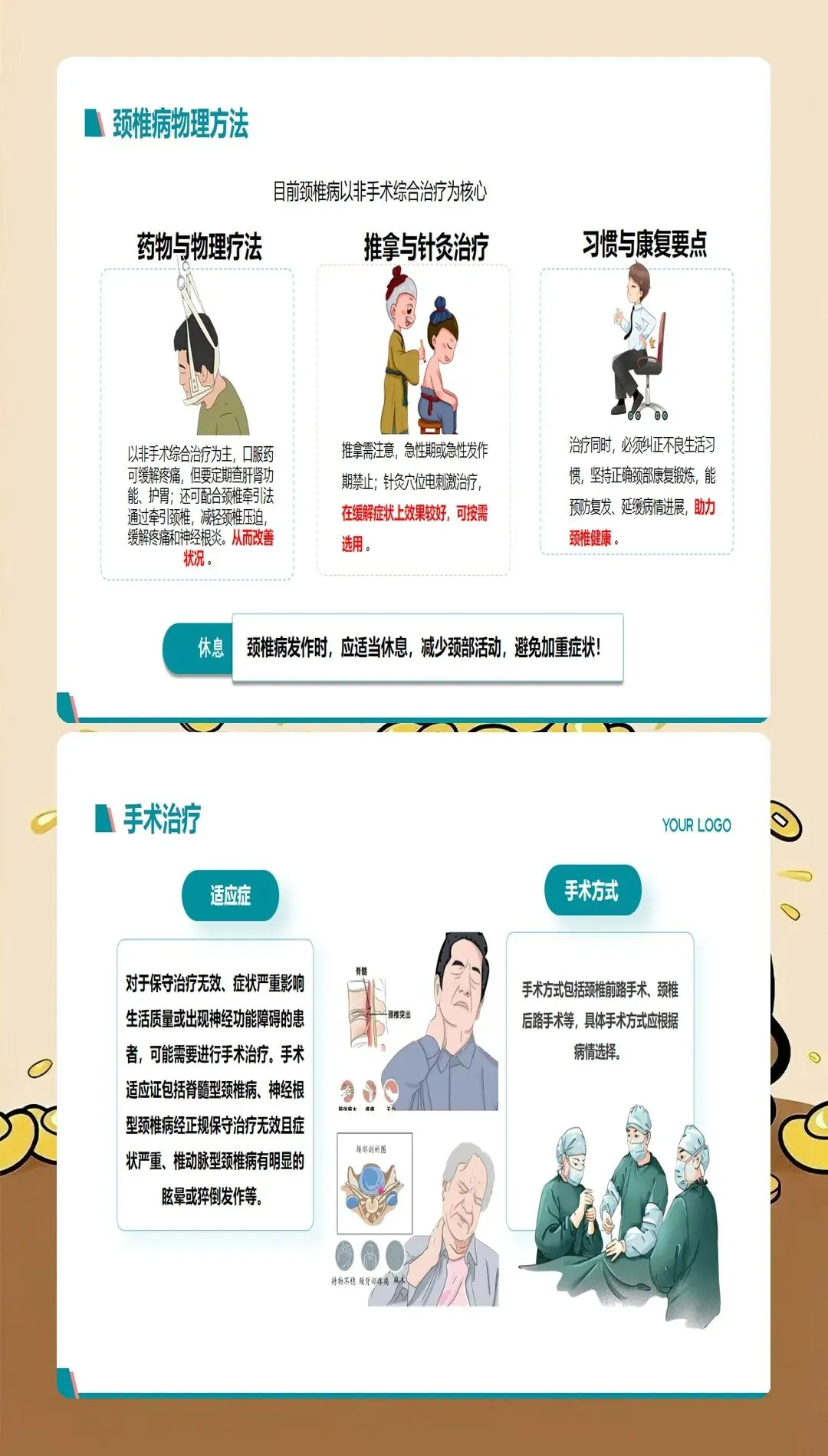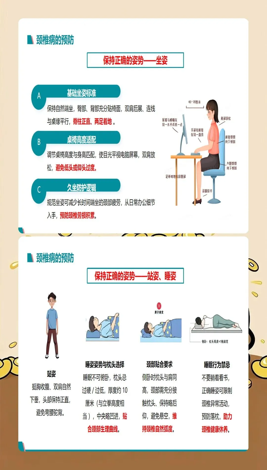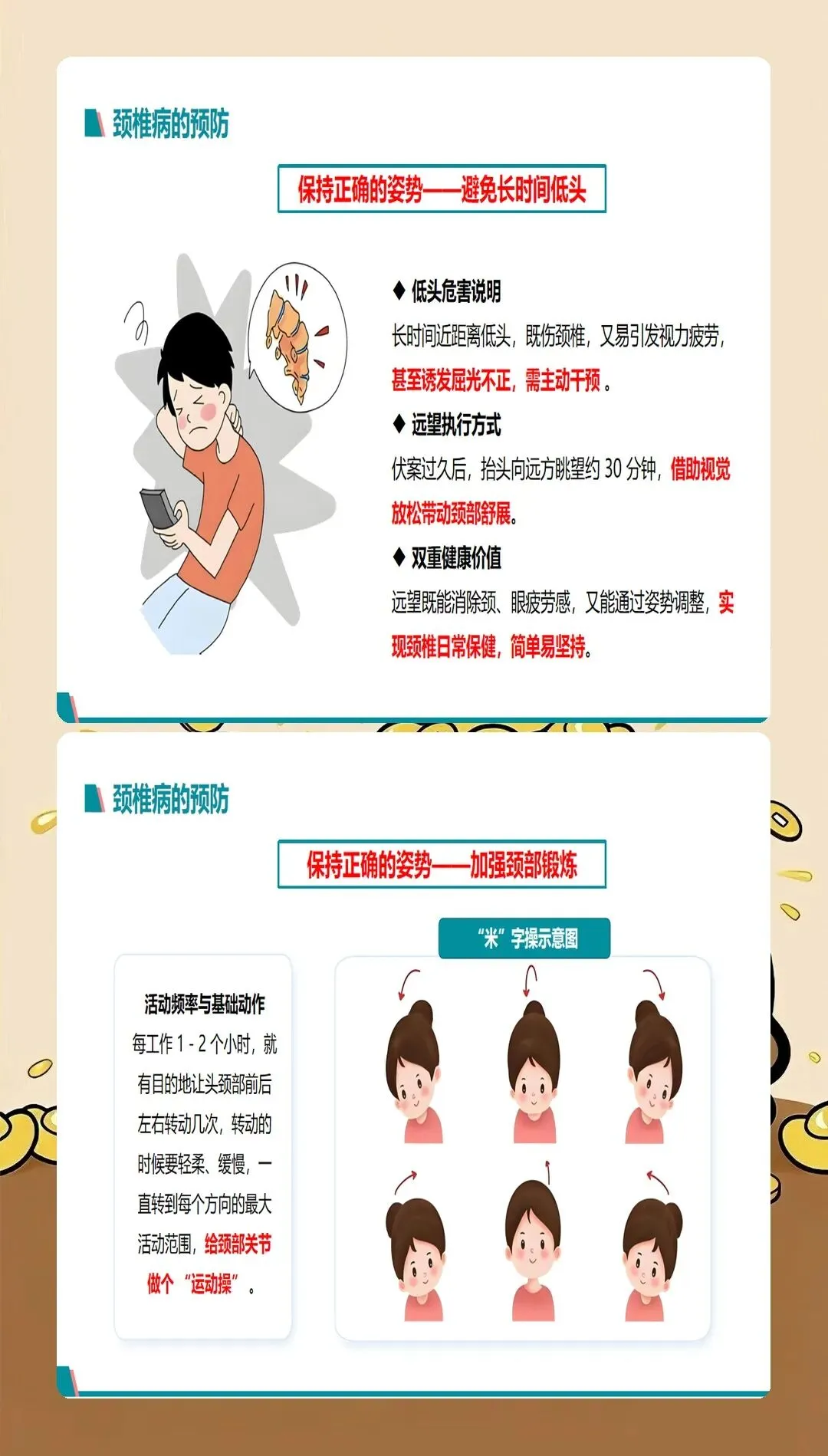 颈椎病是现代社会的常见疾病,发病率呈逐年上升趋势,且发病年龄逐渐年轻化。过去颈椎病多发于中老年人,现在很多年轻人由于长期使用电脑、手机等电子设备,也出现了不同程度的颈椎问题。颈椎病的主要症状包括颈肩疼痛、上肢麻木、头晕头痛、视觉疲劳等,严重影响患者的生活质量和工作效率。作为医护人员,我们不仅要治疗颈椎病,更要做好健康宣教工作,帮助患者预防和管理颈椎病。
