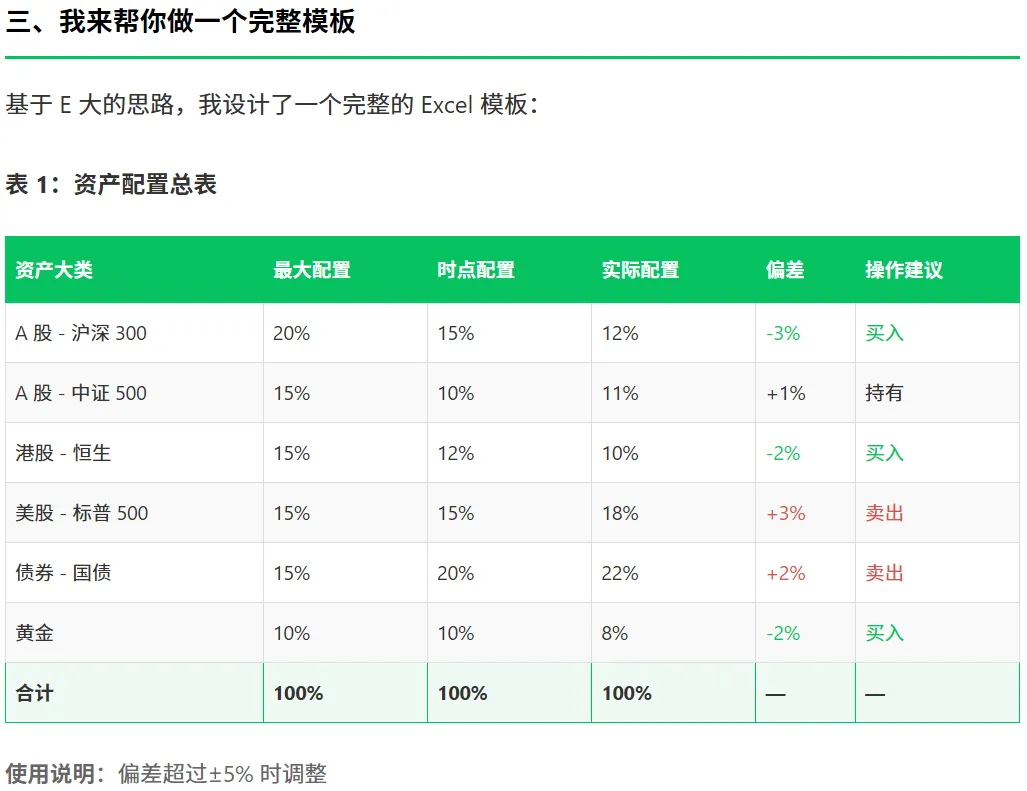 资产配置的实操工具箱:Excel 表格 + 再平衡纪律