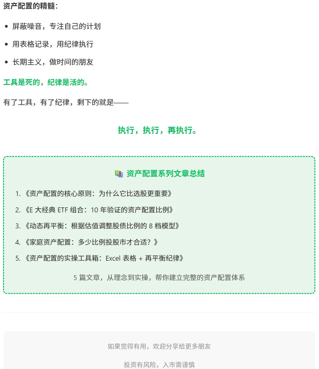 >资产配置的实操工具箱:Excel 表格 + 再平衡纪律
