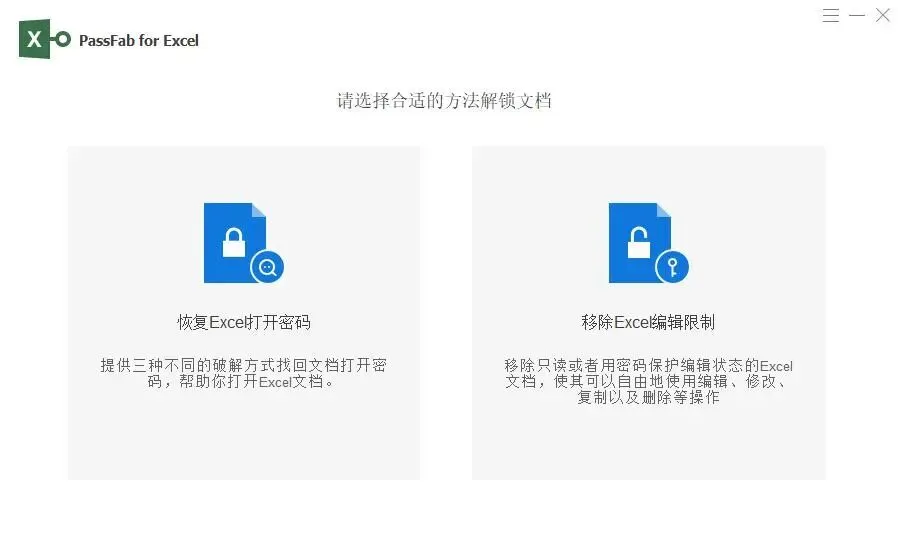 1、下载并安装好PassFab for Excel到电脑上,在打开 PassFab for Excel,单击“移除Excel 编辑限制”。