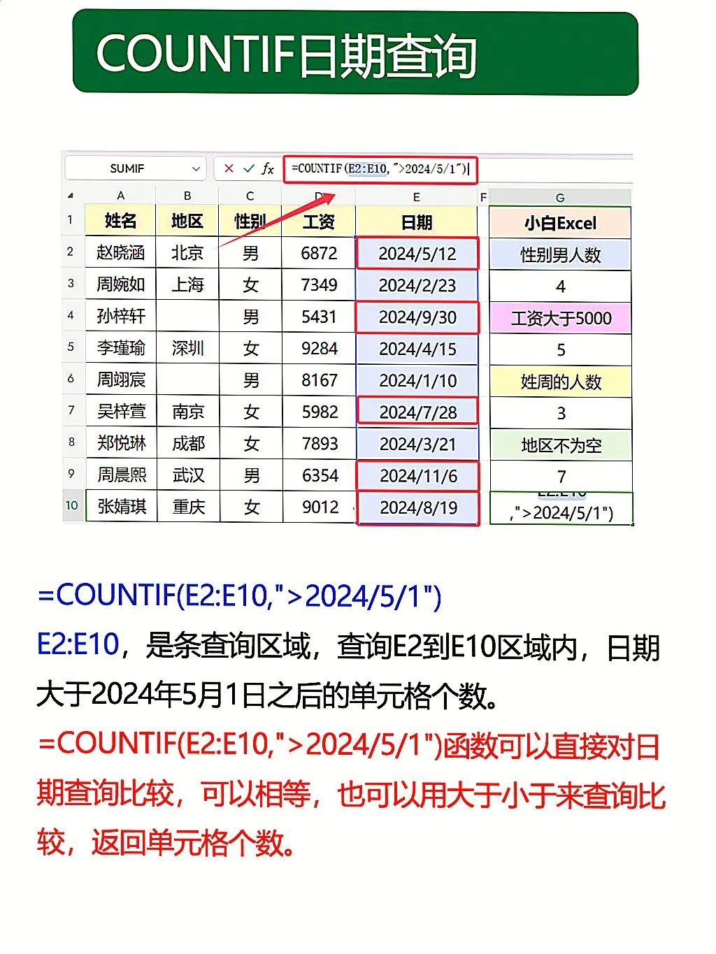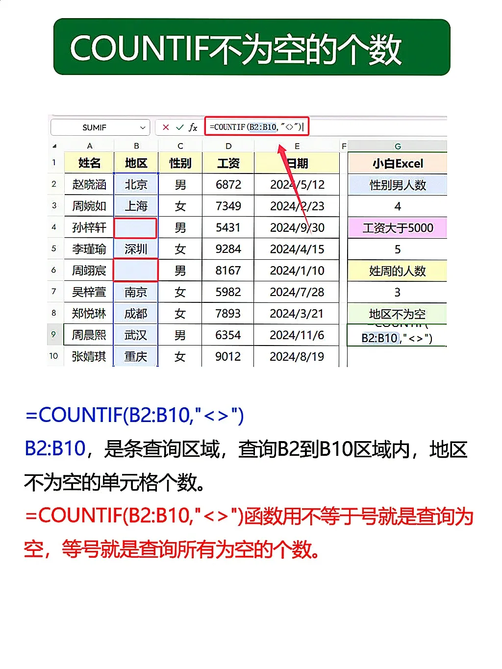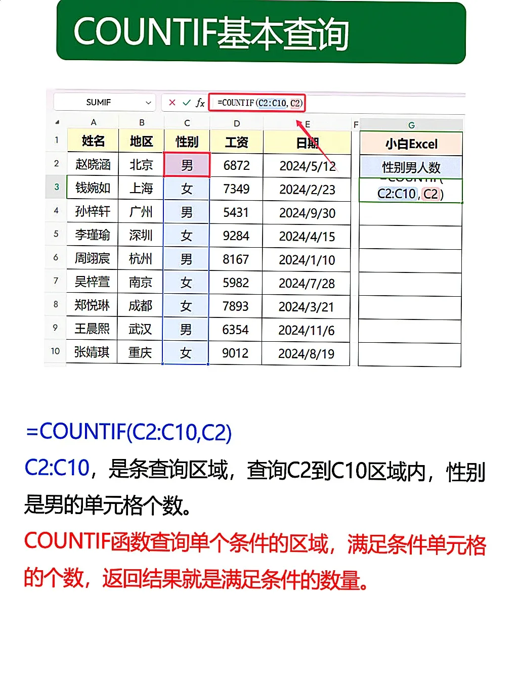 ✅ COUNTIF(范围,条件) 是统计神器,两个参数缺一不可