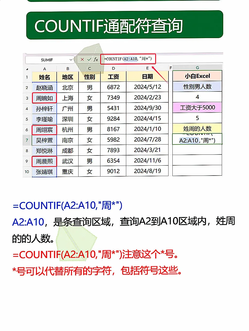💡 进阶玩法:如果你想统计的名字在另一个单元格里(比如F2),公式改成: