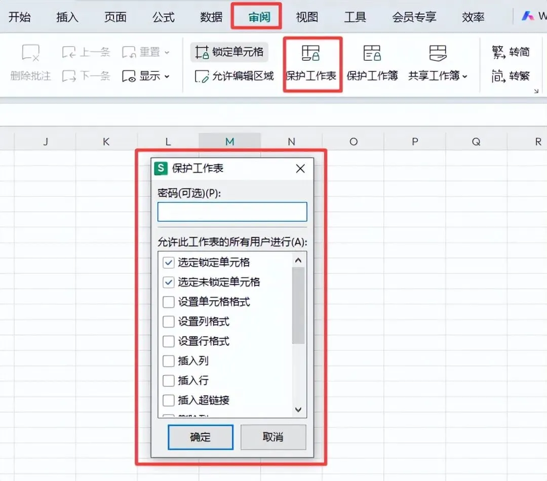 我们可以看下Excel表格中【审阅】下方工具栏是否有【撤销工作表保护】选项,有的话直接点击后,会出现输密码的对话框,输入原本设置的限制密码,按【确定】,限制保护就取消了。