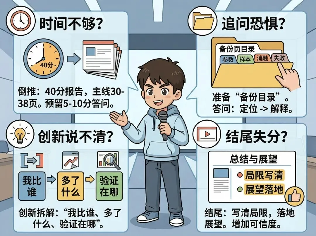 大多数答辩失误不是“研究不行”,而是“准备方式错位”。以下四个痛点你几乎都会遇到,提前设计能明显降低临场崩盘概率。