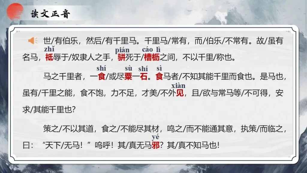 当前位置:首页>PPT>【��说课一等奖】《马说》高分说课课件PPT(免费分享)