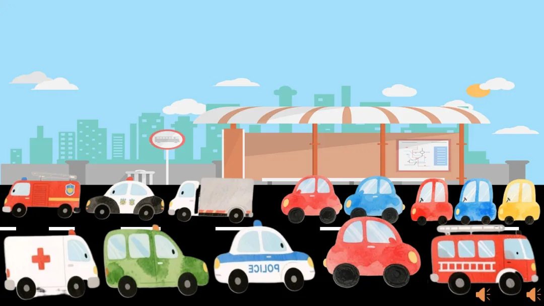 展示堵车图片,播放汽车喇叭声:“嘀嘀嘀!堵车啦!”