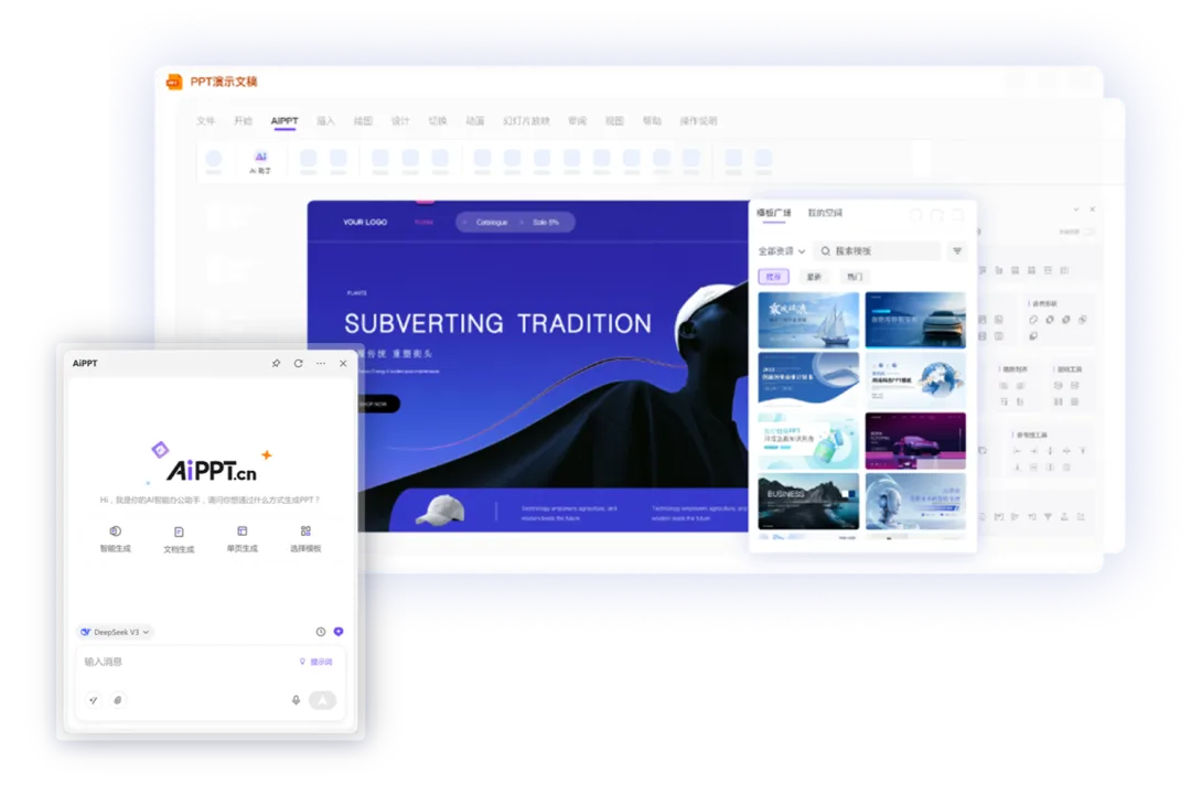 AiPPT 插件是一款以人工智能为核心,深度融合创作、设计与资源三大核心能力的智能演示解决方案,为用户打造全流程、一站式的 PPT 制作体验。插件搭载专业 AI 智能生成系统,依托多个高级大语言模型赋能,支持智能生成、单页生成、模板选择、文档生成等多种创作方式,用户仅需输入主题或上传文档,即可快速生成完整且专业的 PPT 内容,实现创意一键成型。